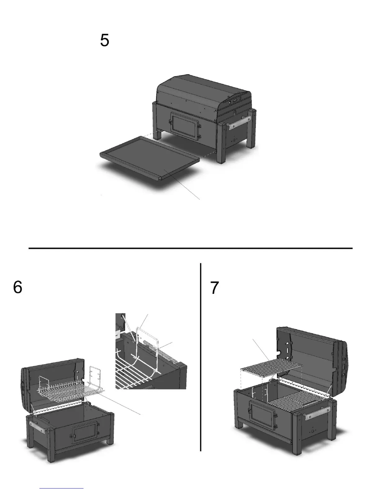 Lower into Grill Bottom and hang from Tabs on each side.