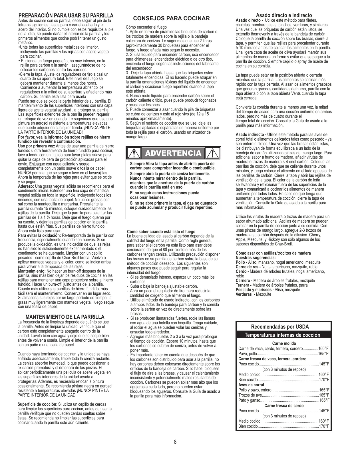 de la letra, se puede dañar el interior de la parrilla y los