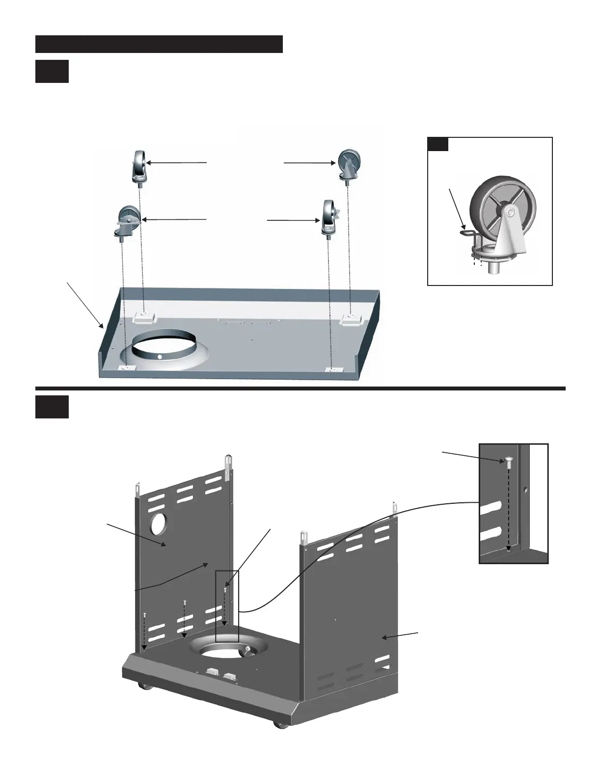 sure the two locking casters are secured at the rear and the non-locking casters are secured at the front. After all 4 casters