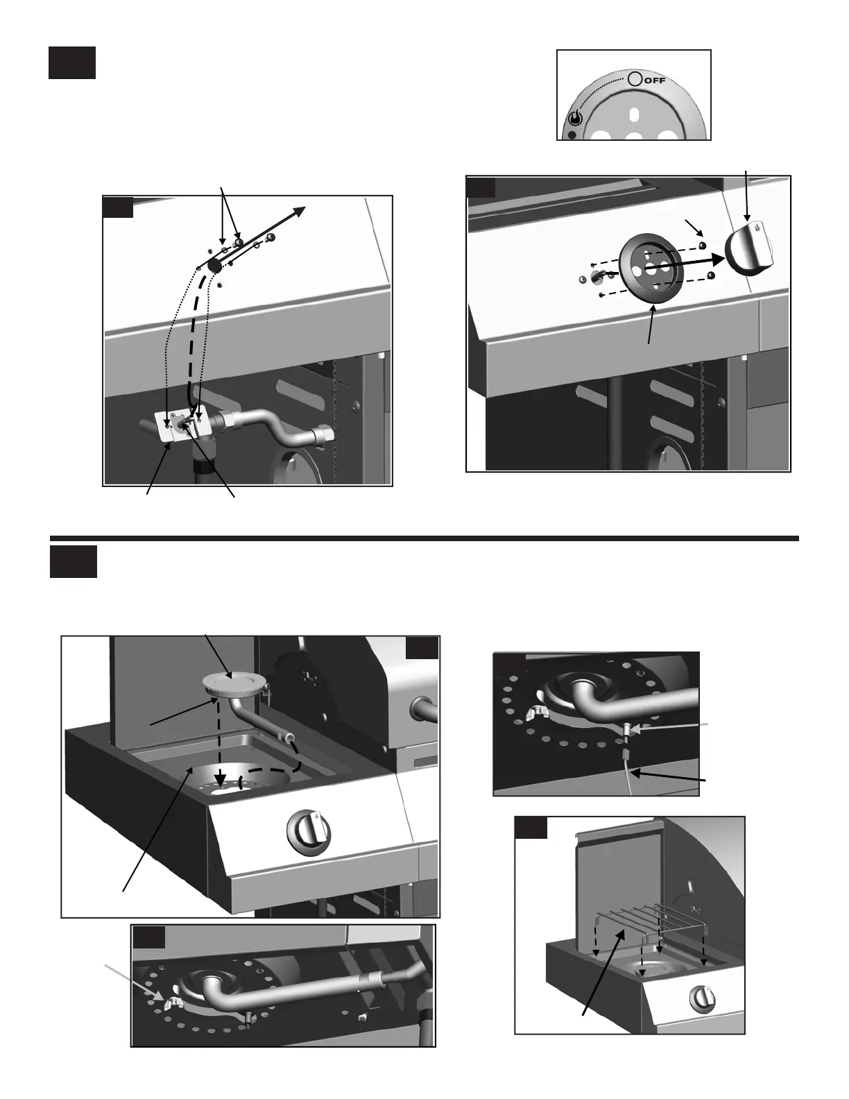 Insert sideburner burner into left shelf. The stud on bottom of burner fits into rear small hole in sideburner drip