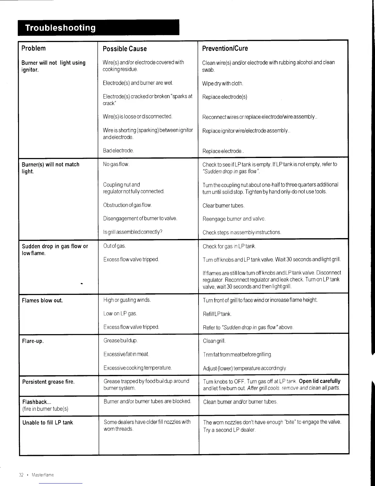 Char-Broil MASTERFLAME 2 - Troubleshooting Common Problems