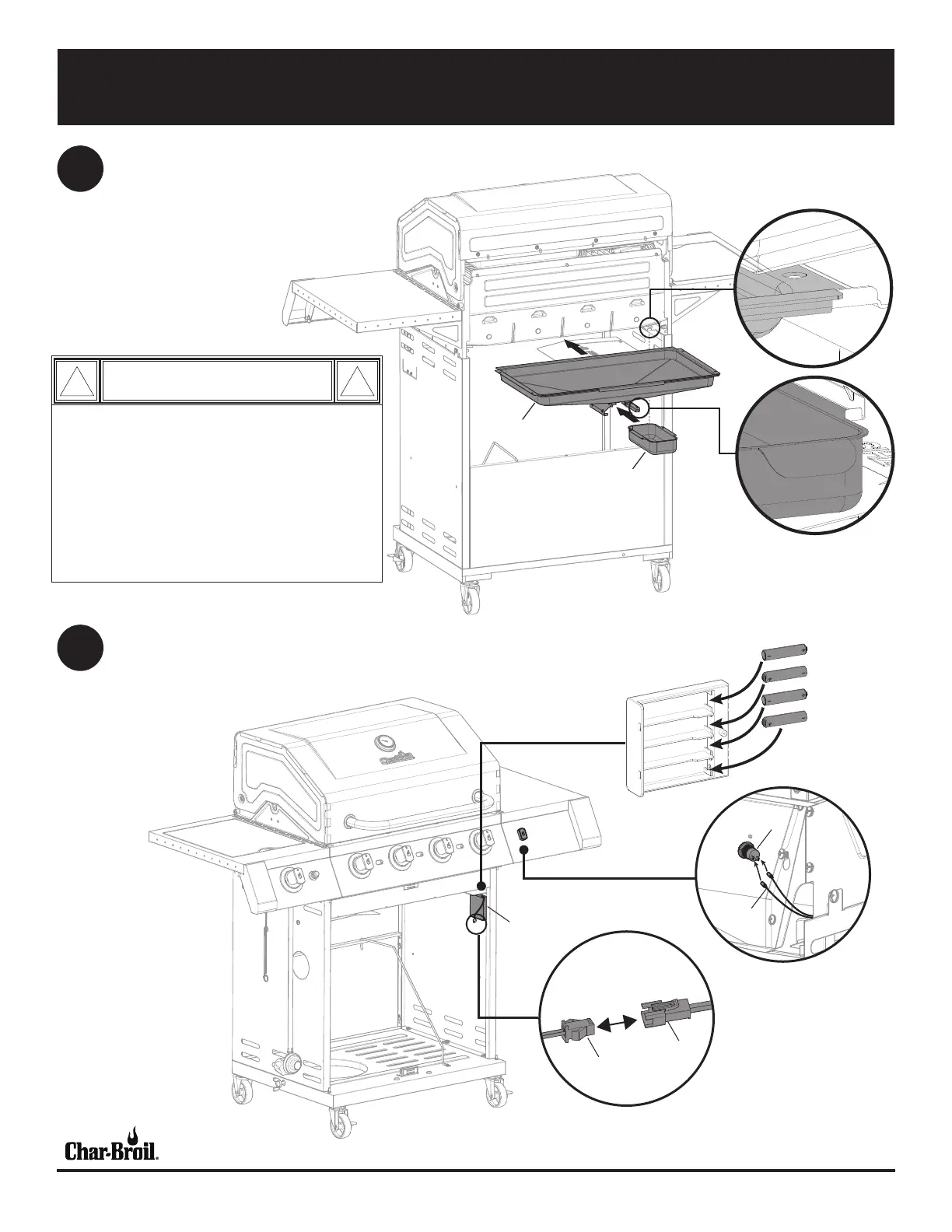 Failure to install grease tray and grease pan will cause hot grease