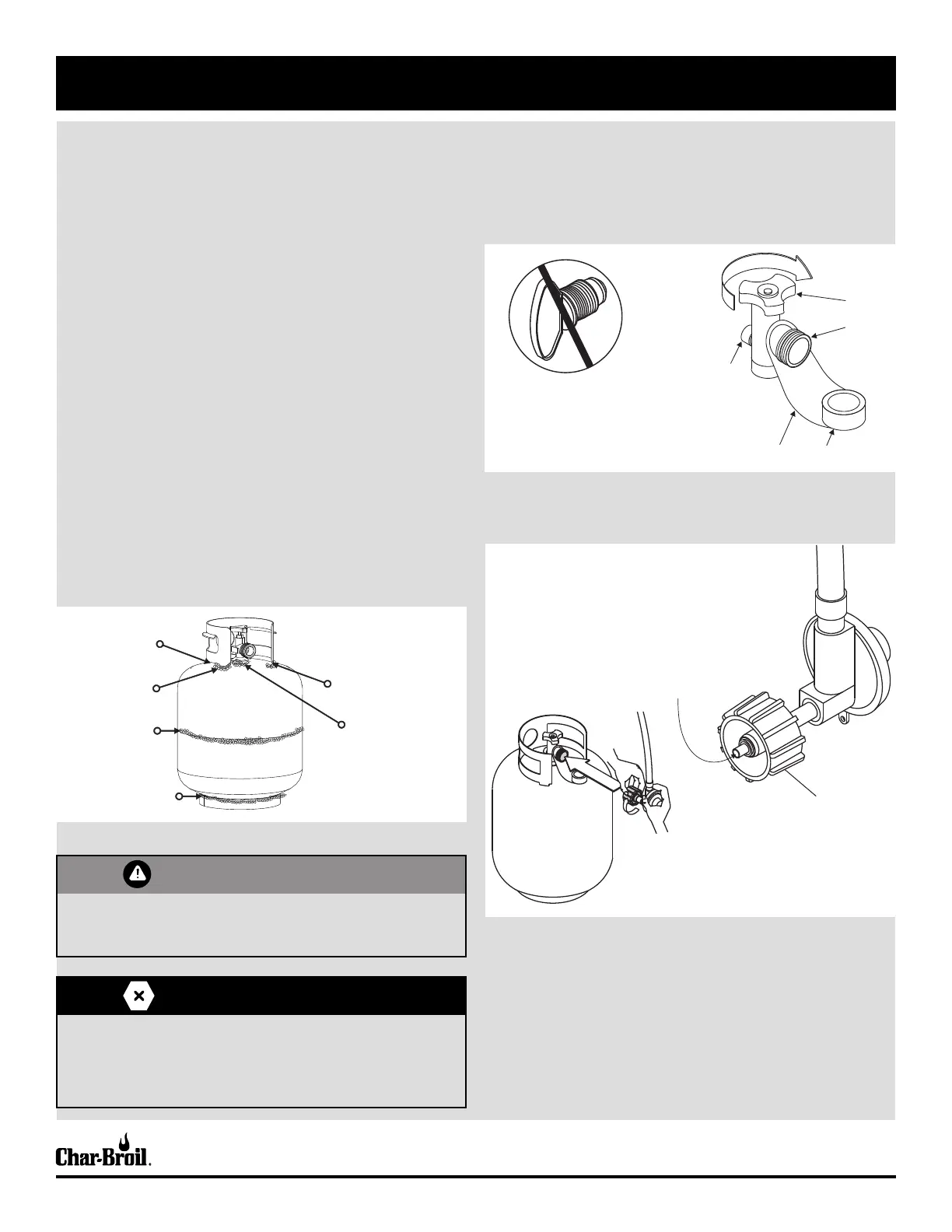 • Leak test new and exchanged LP cylinders BEFORE connecting to grill.