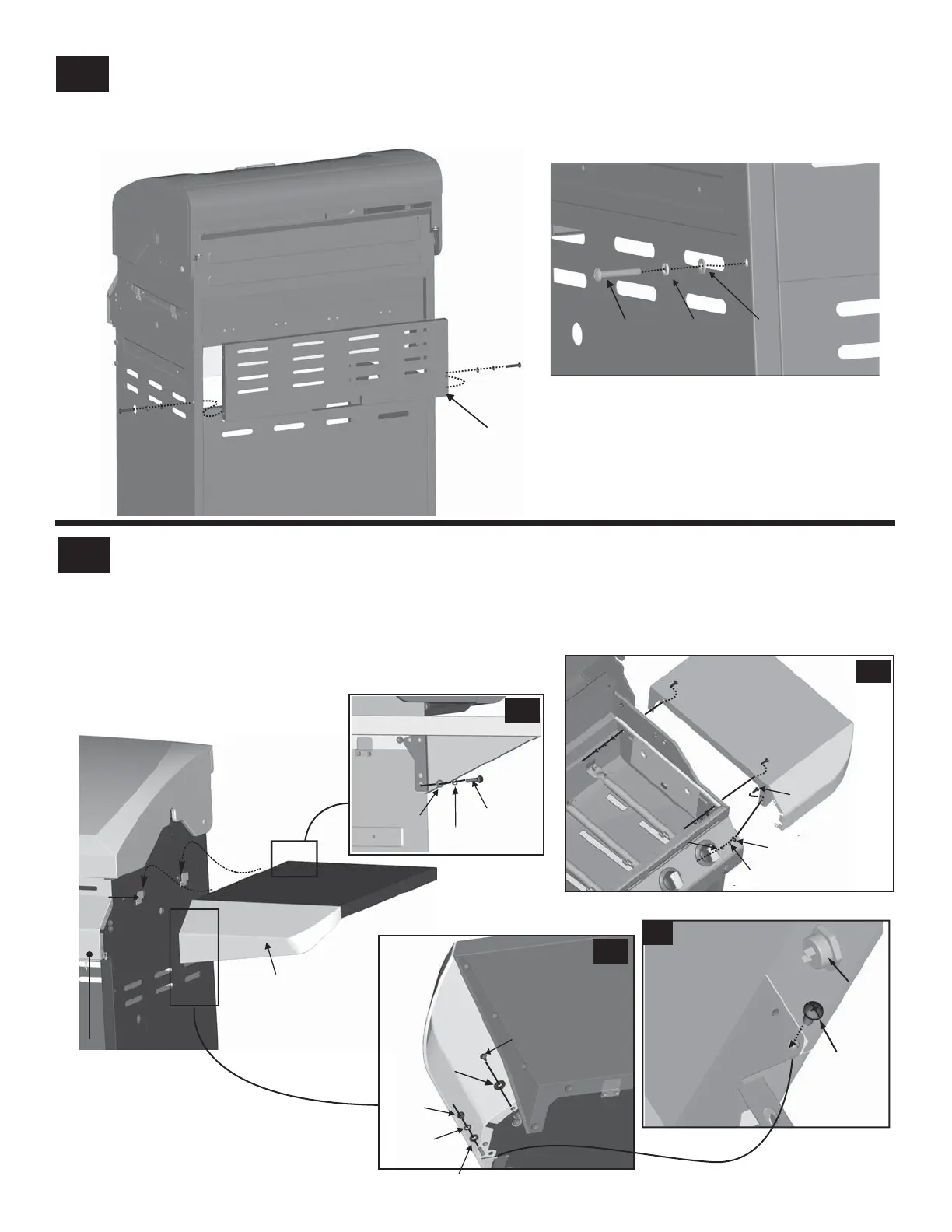 Insert flange on right side shelf into side shelf brackets on side of firebox.