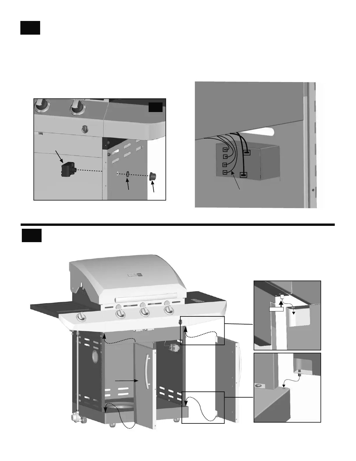 Connect each of the wires from the main burner electrodes, and sideburner electrode into the back of the Electronic Ignition