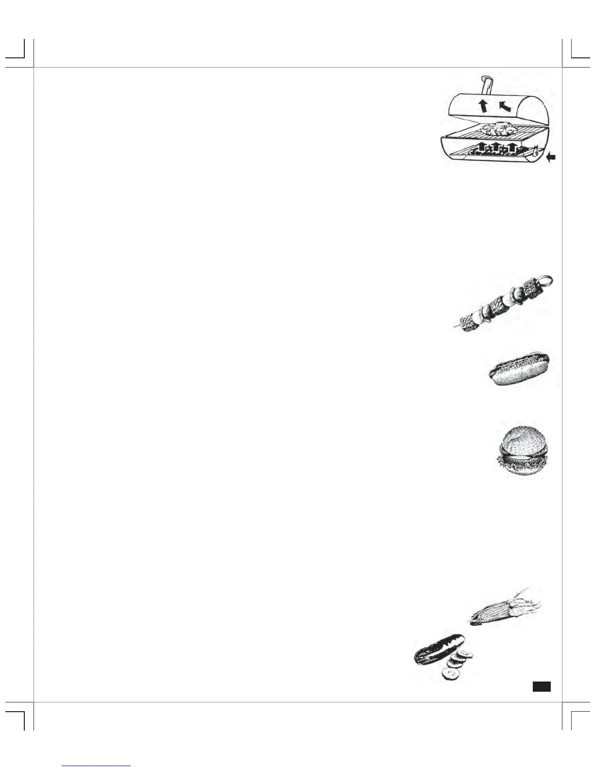 HOT DOGS – Grill with lid up and fire grate in high (hot) position for approximately 6 minutes, turn every few minutes.