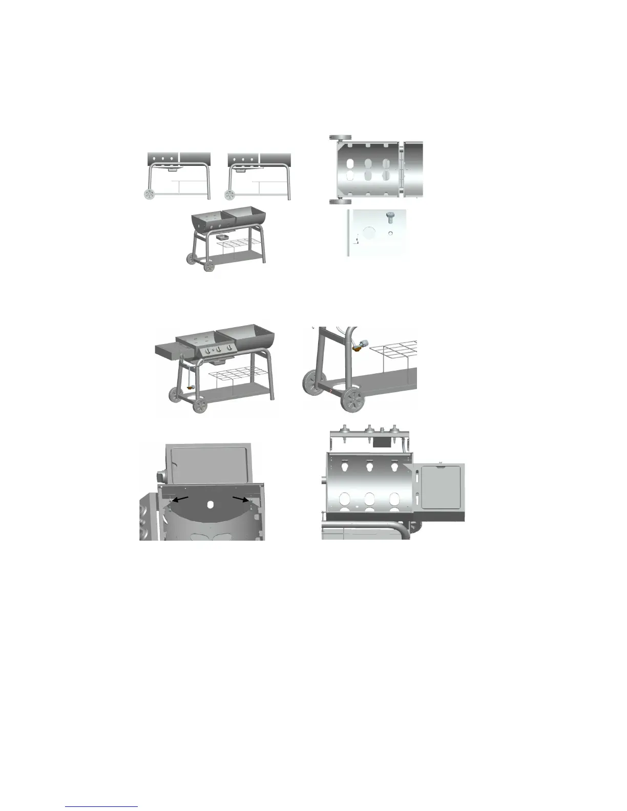 Attach the CATCH PAN to the underside of the GRILL BODIES using two (2) ½” BOLTS as