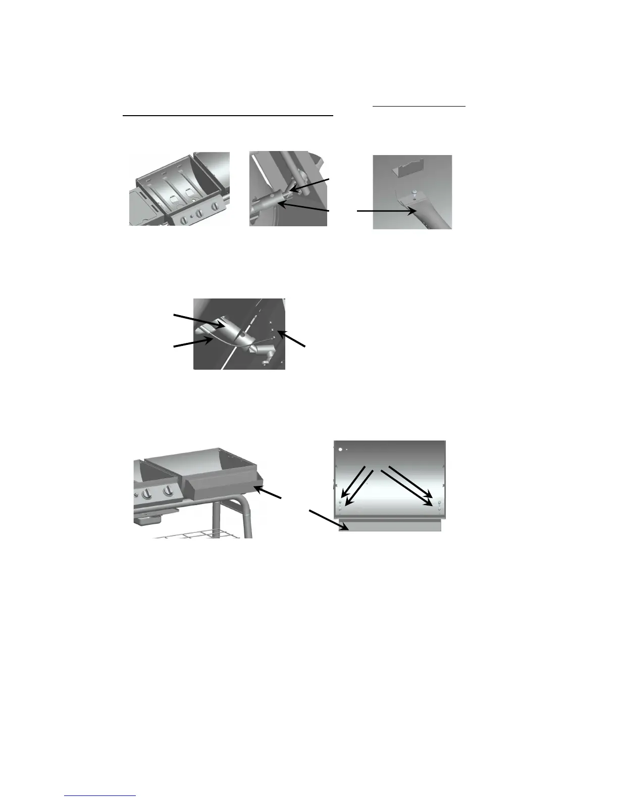 Install the BURNERS into the GAS GRILL BODY by first inserting the open end of the BURNERS