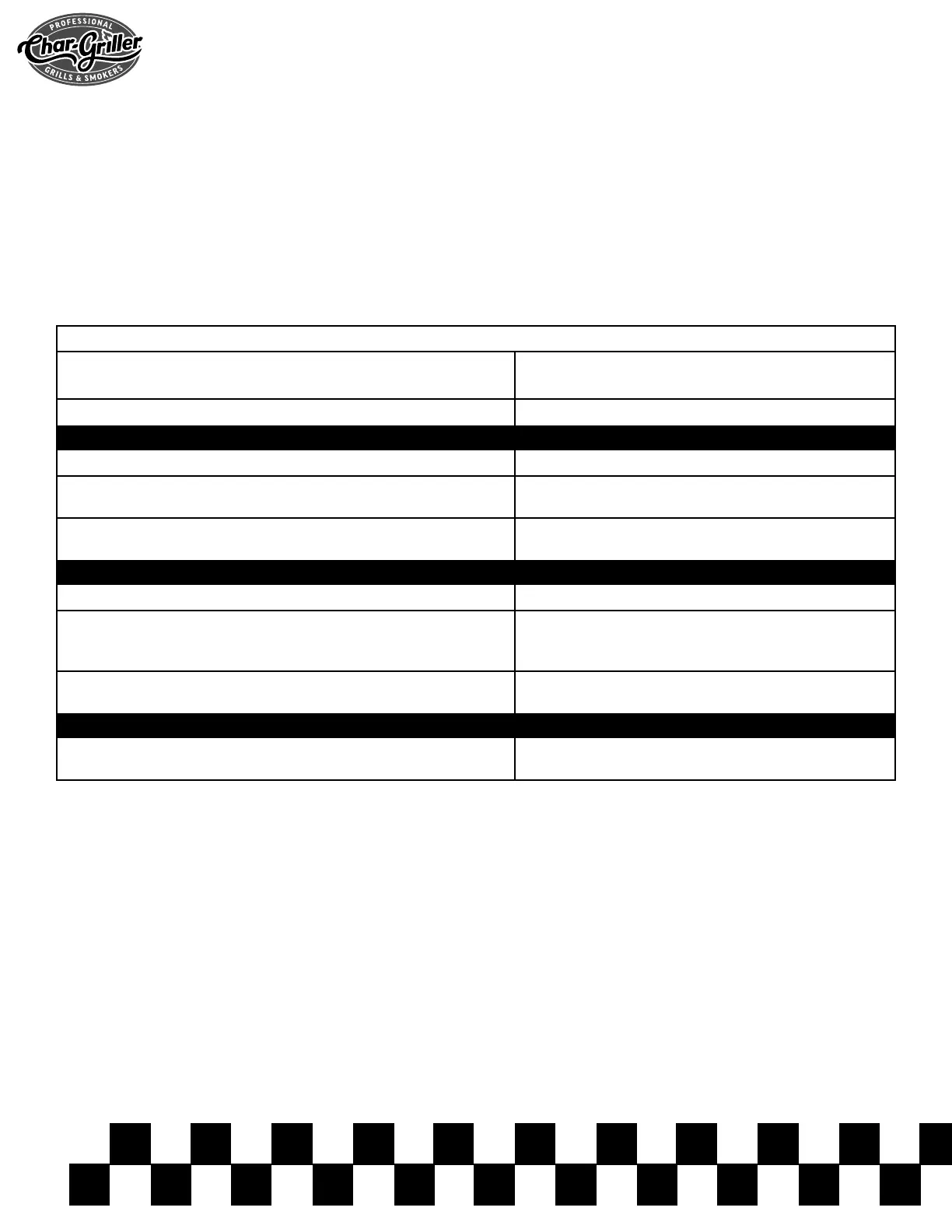 Las garantías sólo cubren el reemplazo de partes defectuosas. Char-Griller no se hace responsable de daños que result-