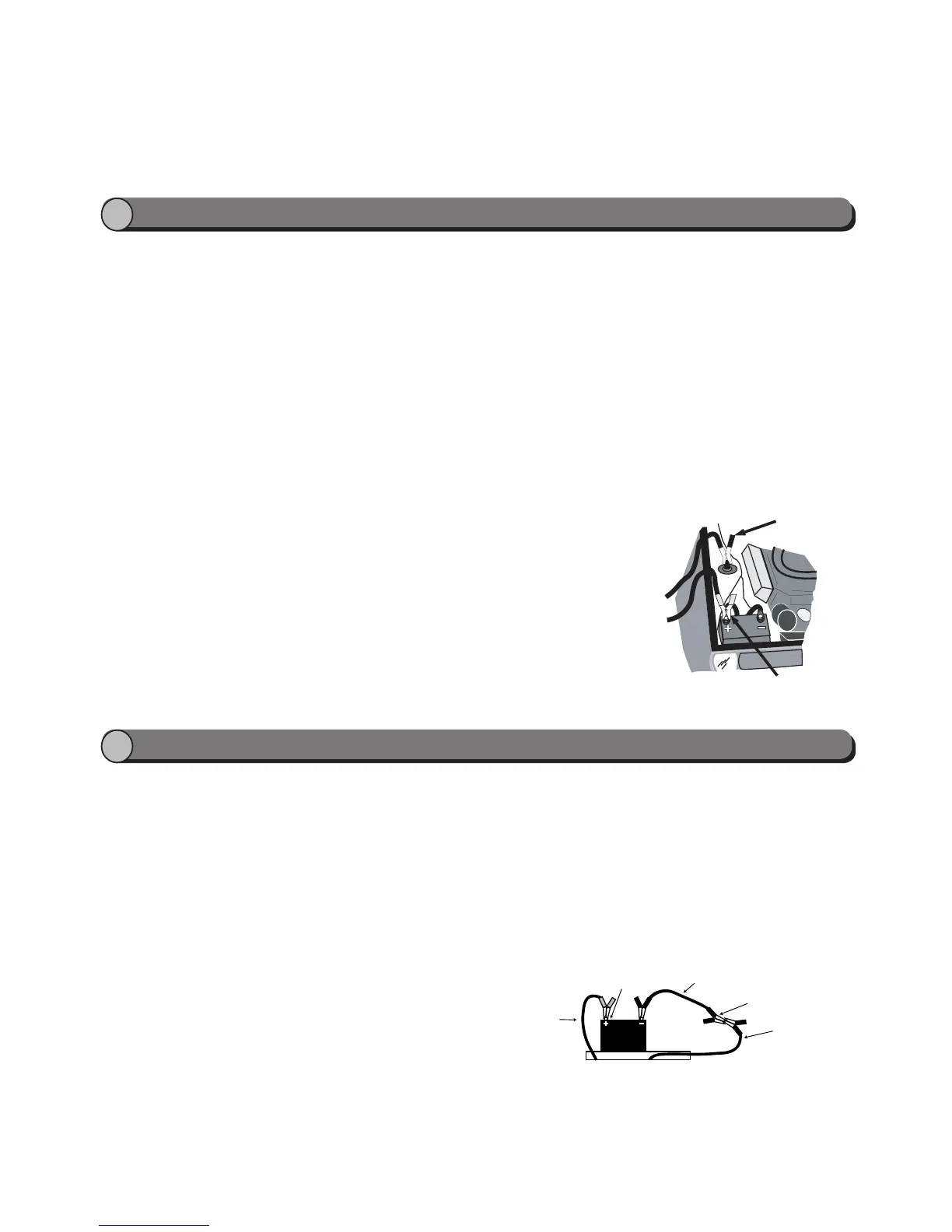 away from the battery as possible. Do not connect the clip to carburetor, fuel lines, or