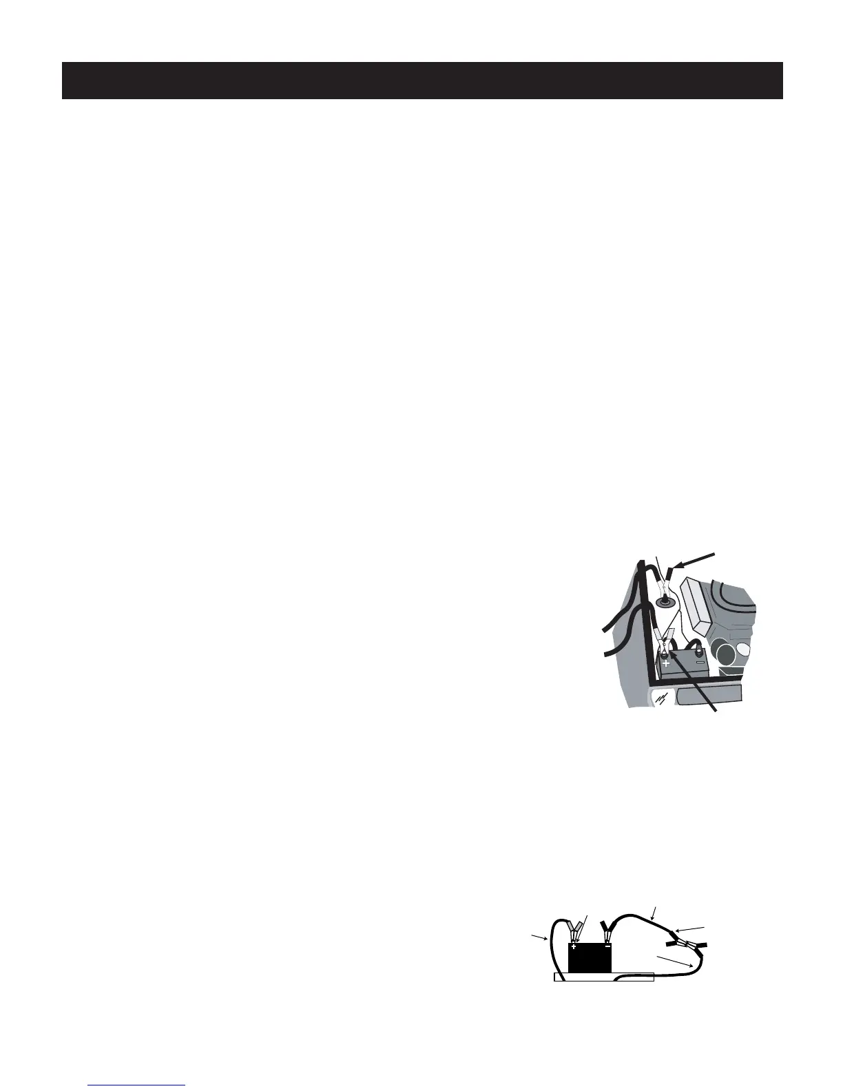 POSITIVE (rouge) du chargeur à la borne POSITIVE de la batterie, ni au carburateur, aux conduites de