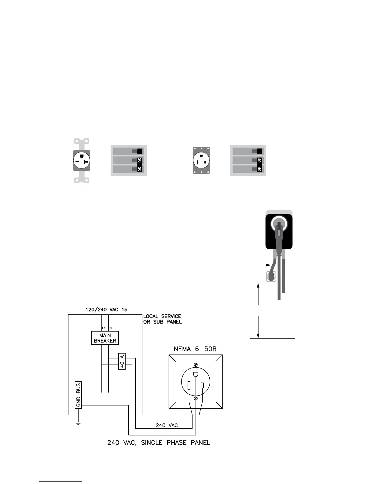 The NEMA outlet should be located 20-26" from the ground. Refer