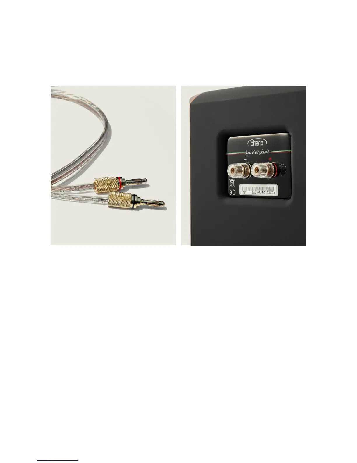 I morsetti di ingresso dei diffusori Chario riportano chiaramente