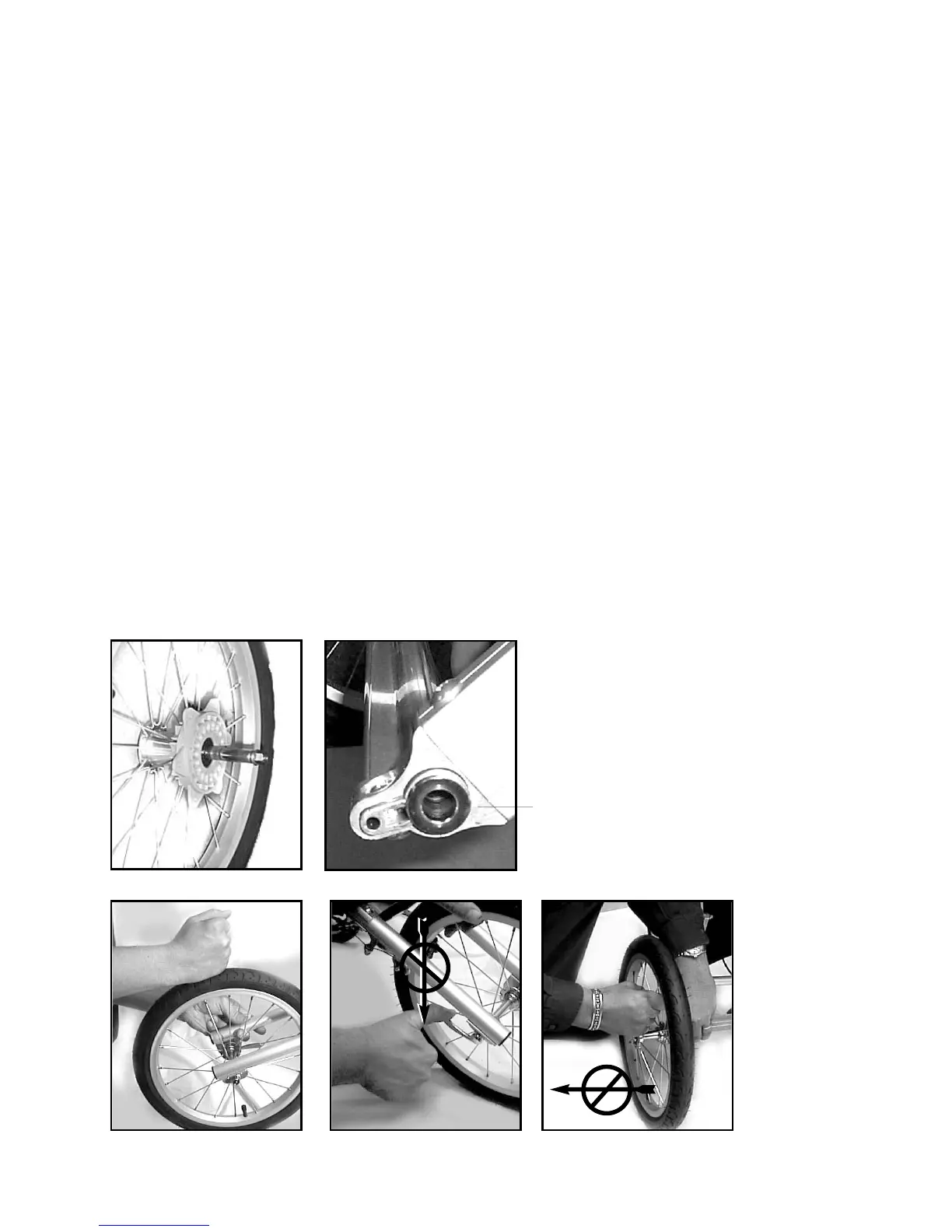 9. For the rear wheel, test for a secure attachment by attempting to pull the rear hub