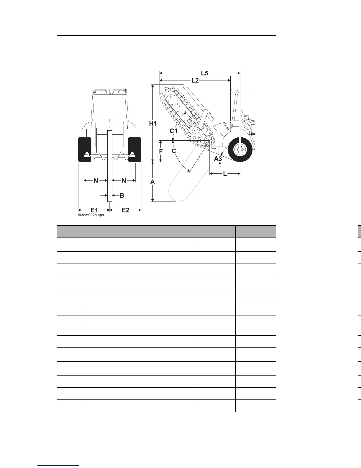 F Headshaft height, digging chain 32 in 810 mm
