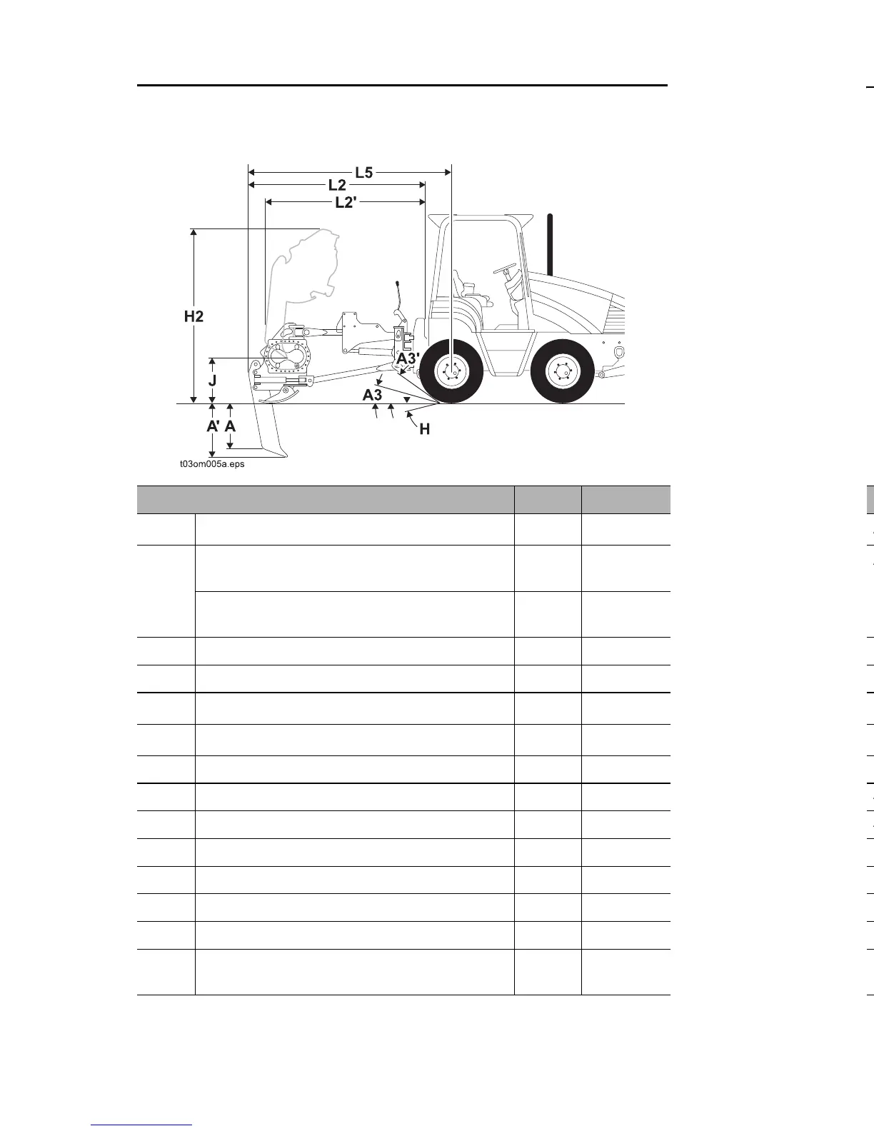 Attachment length, fully lowered, no blade 103 in 2.6 m