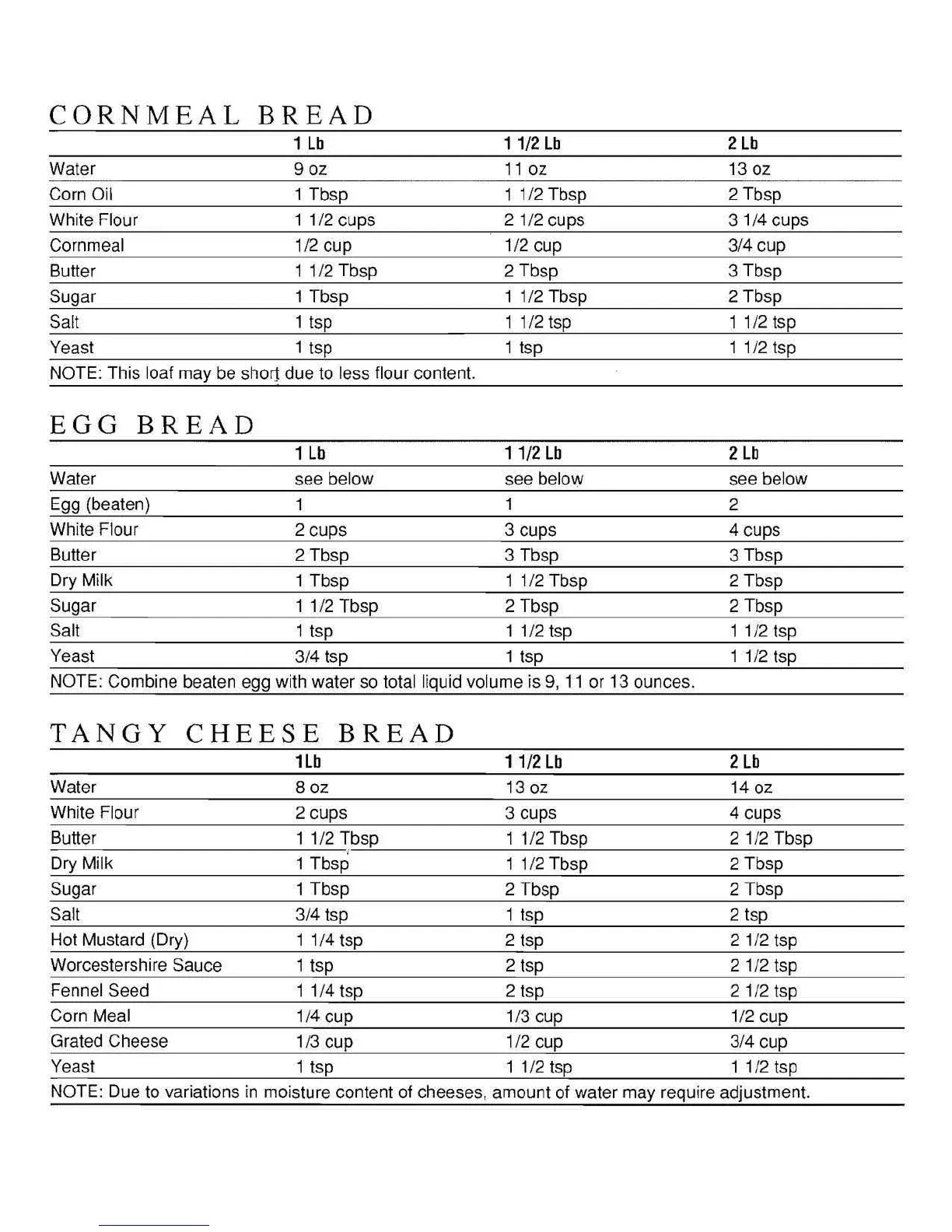 Cornmeal 1/2 cup 1/2 cup 3/4 cup
