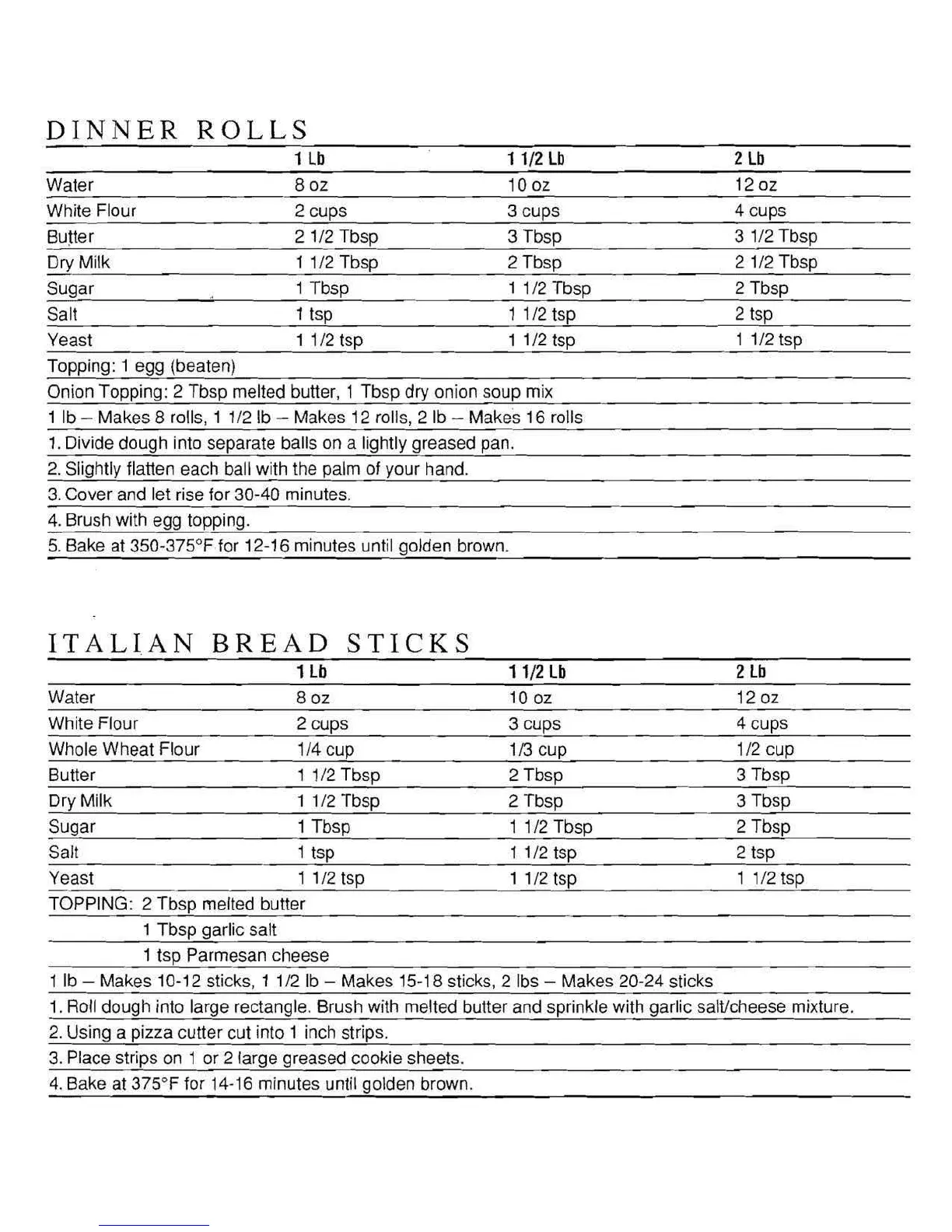1 lb - Makes 8 rolls, 1 1/2 lb - Makes