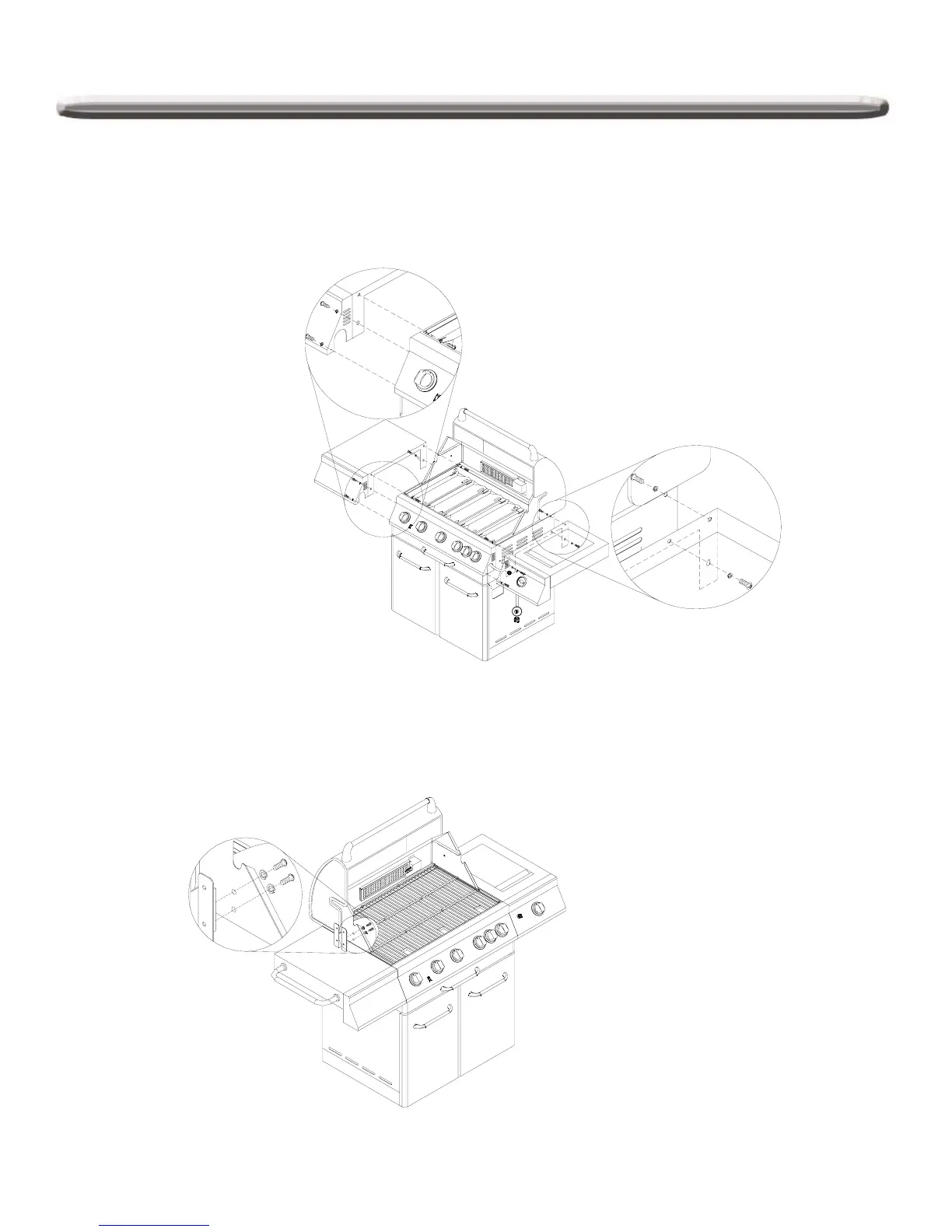 Assemble the shelf to the left side panel and the side burner to the right side panel