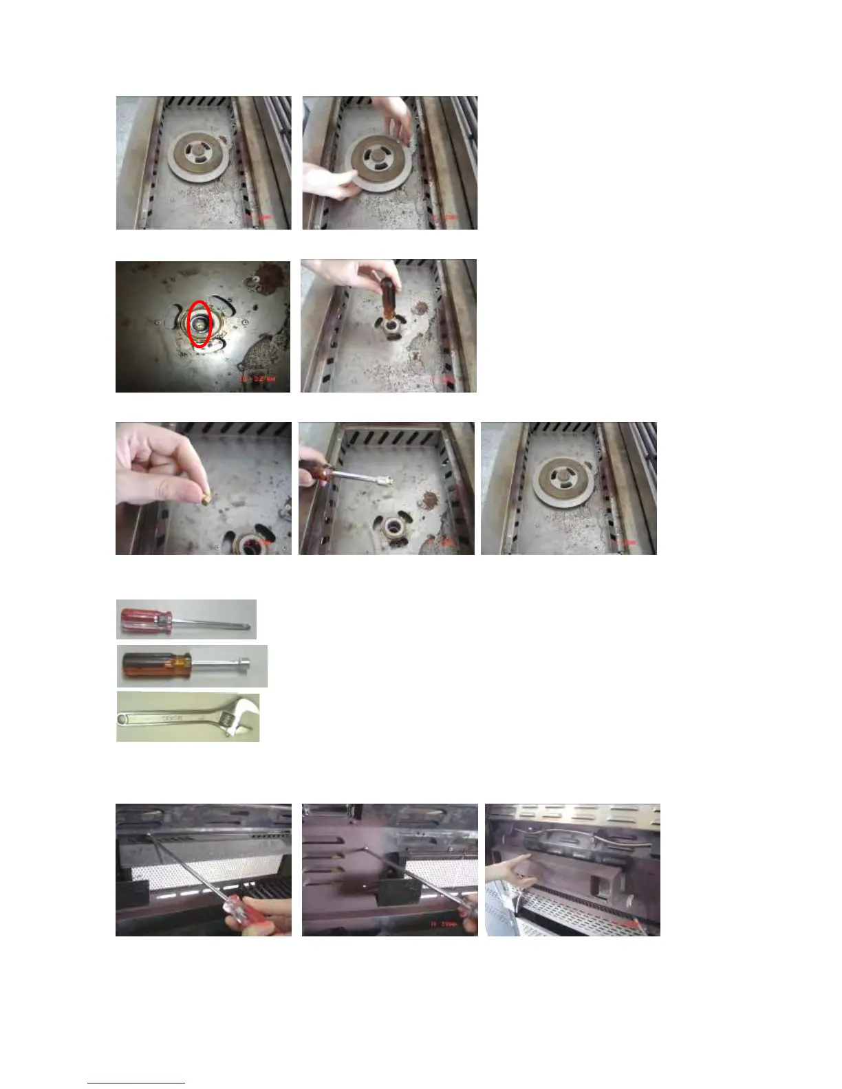 six screws on the rear burner cover and remove cover from grill.