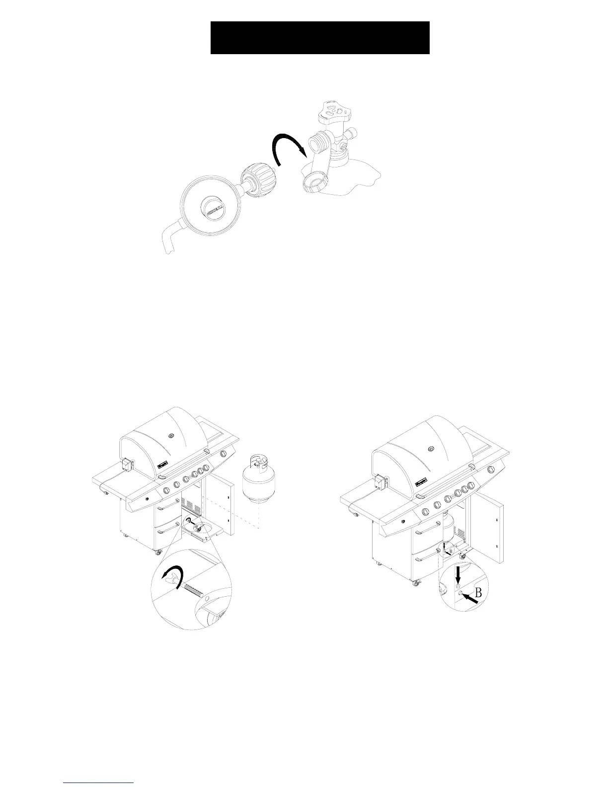 1. Attach regulator to the propane tank by turning the regulator handle clockwise (FIGURE A).
