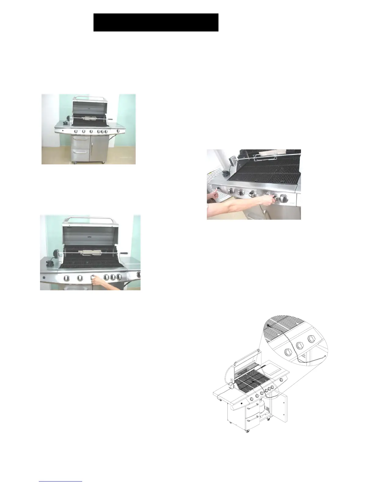 The same process for using match light the side burner and rotisserie