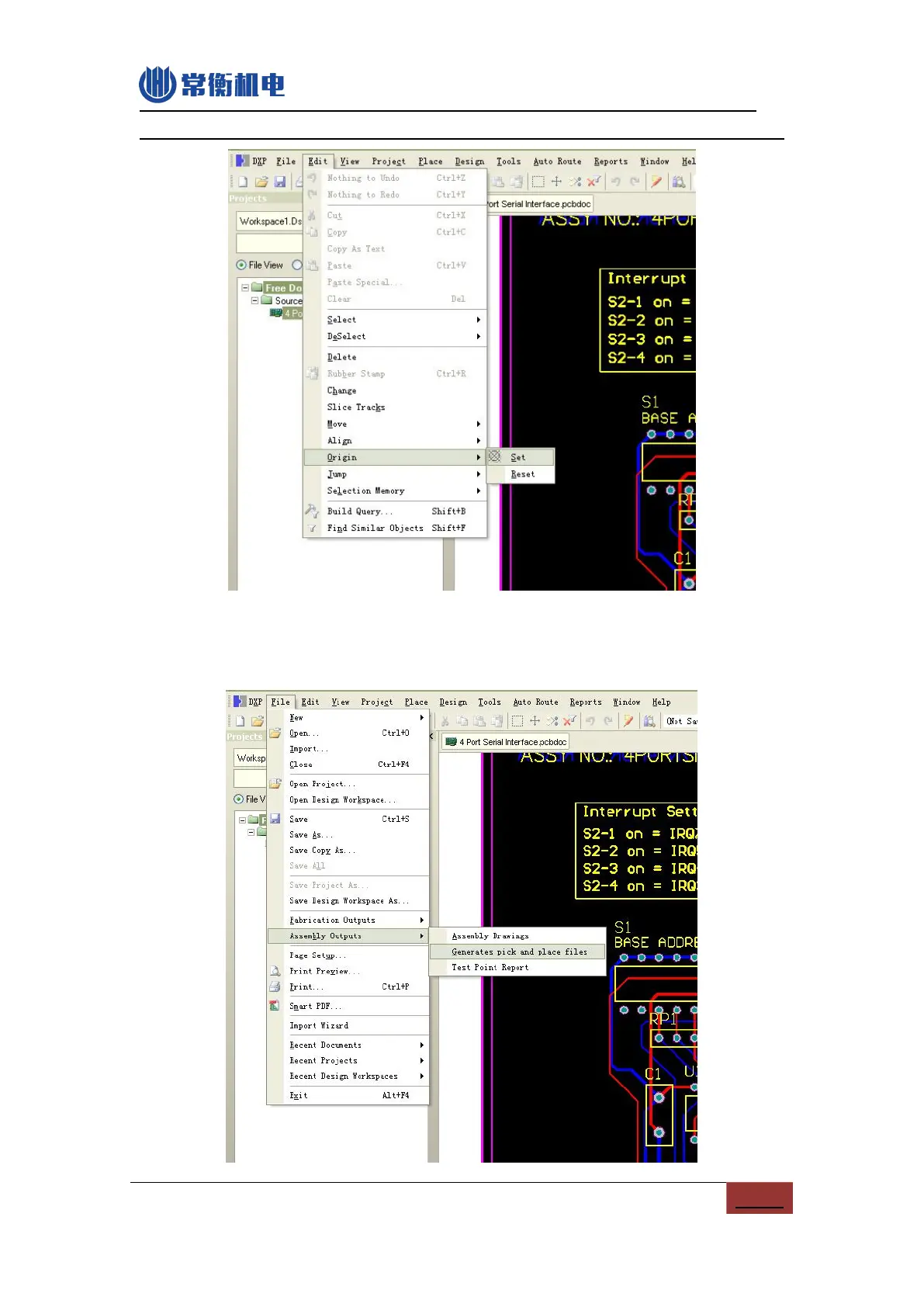 (3) Figure as below, select “File”-“Assembly Output”-“Generates pick and place for
