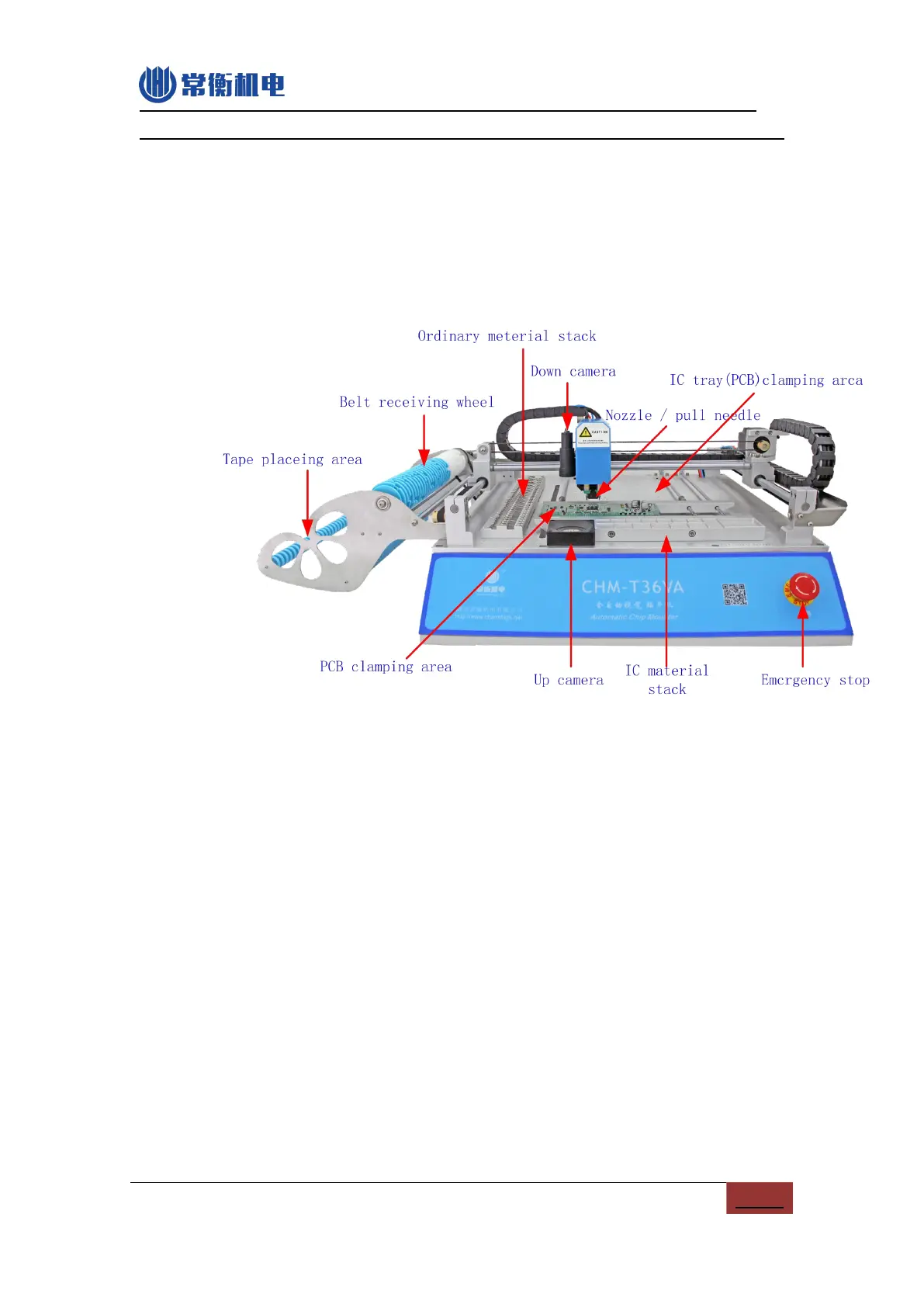 (7) Down camera: Used for observing and location, and PCB MARK auto adjust.