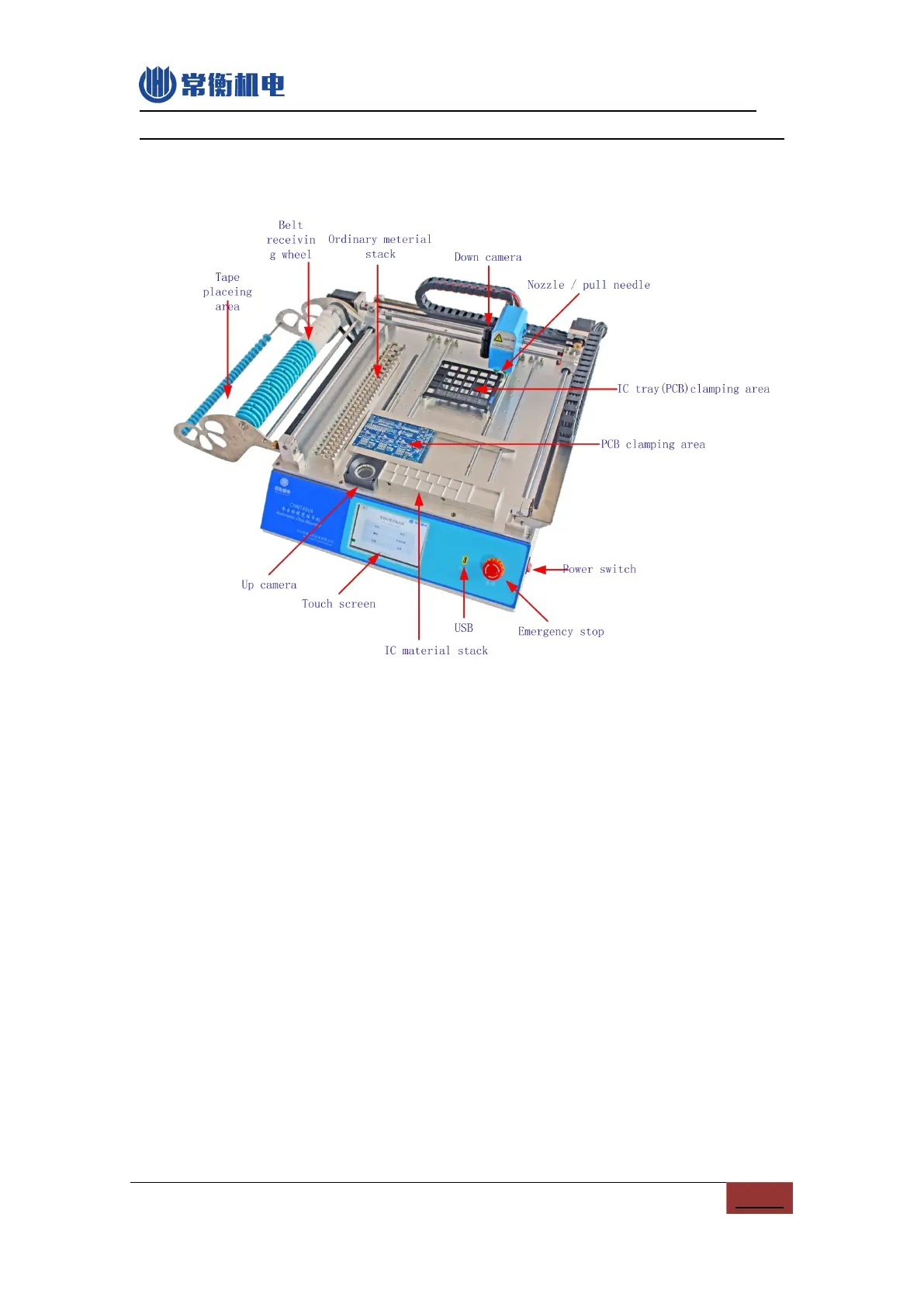 (2) LCD touch screen: Used for operating the machine.