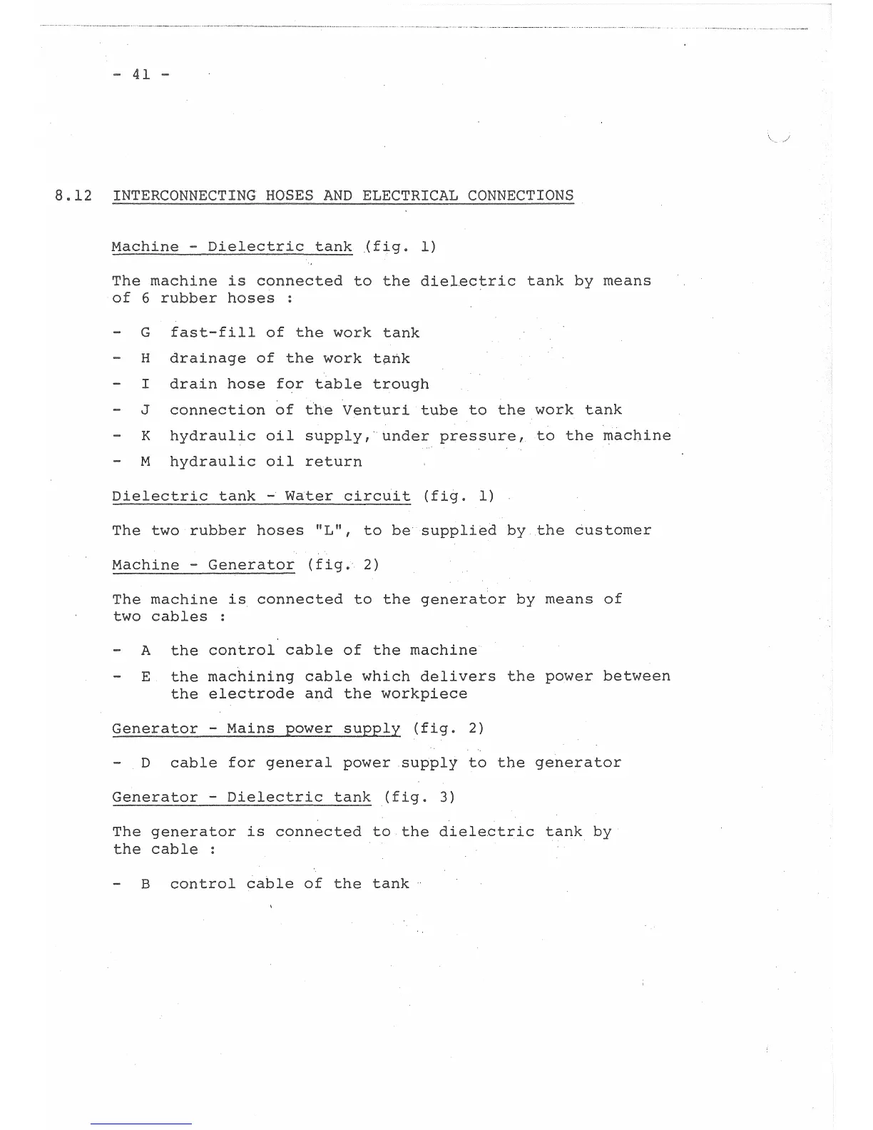 Charmilles E110-D10 - 8.12 INTERCONNECTING HOSES AND ELECTRICAL CONNECTIONS