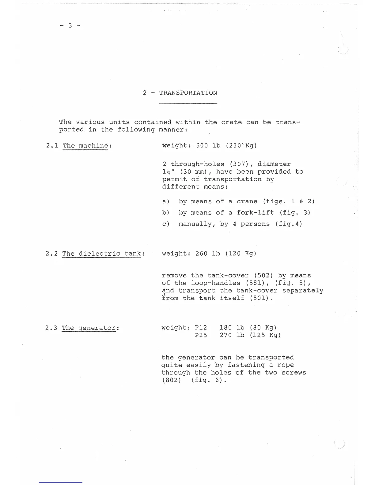 Charmilles E110-D10 - 2 - TRANSPORTATION; 2.1 The machine