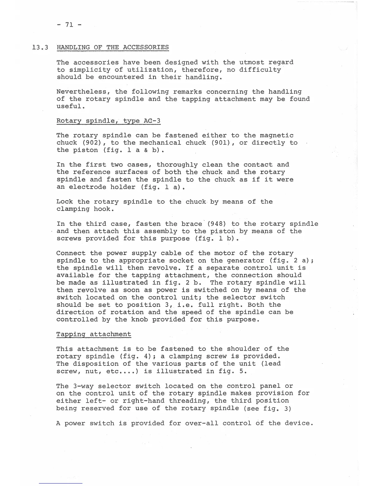 Charmilles E110-D10 - Handling of the Accessories; Rotary Spindle; Tapping Attachment