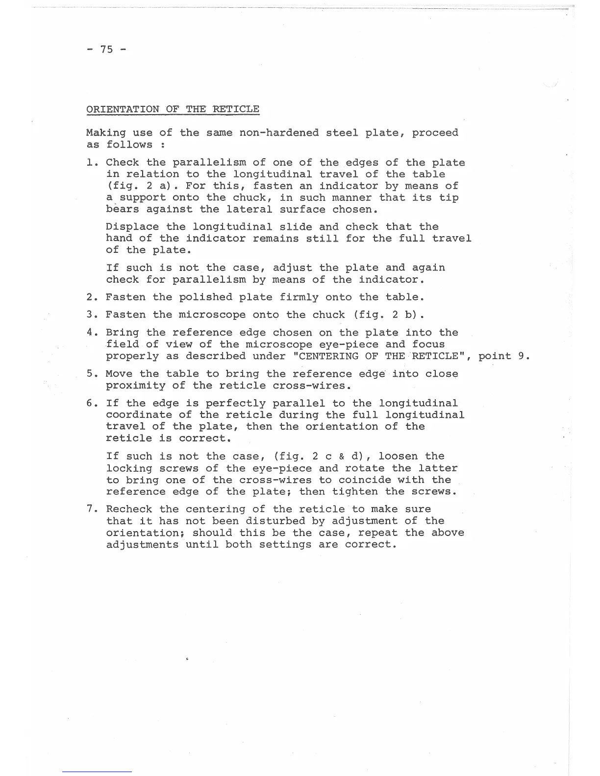 Charmilles E110-D10 - Orientation of the Reticle