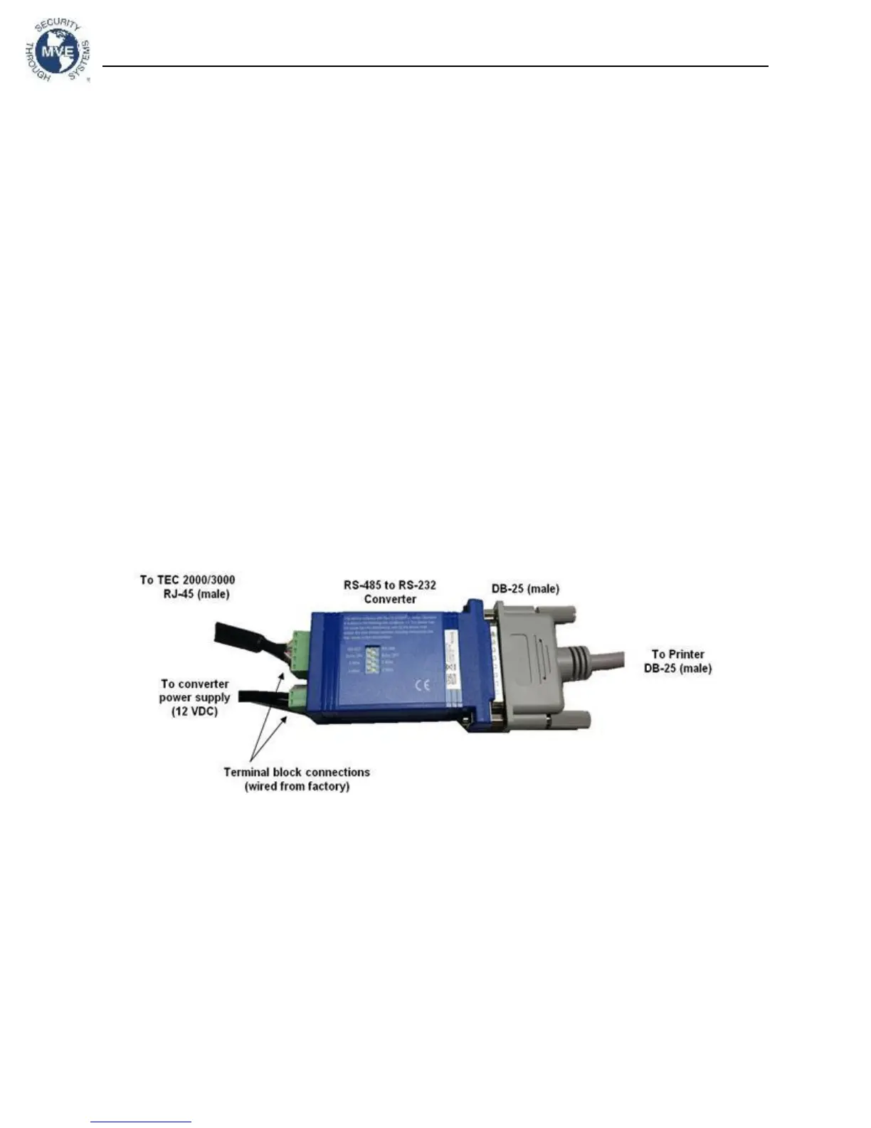 Connect the printer to TEC 3000 serial port 1 or 2 via the RS-485 converter assembly