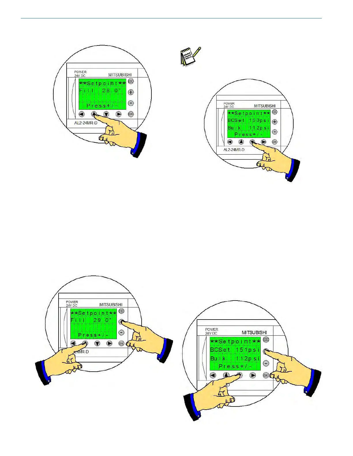 • Pressing and holding the “Up” arrow and pressing the “+”