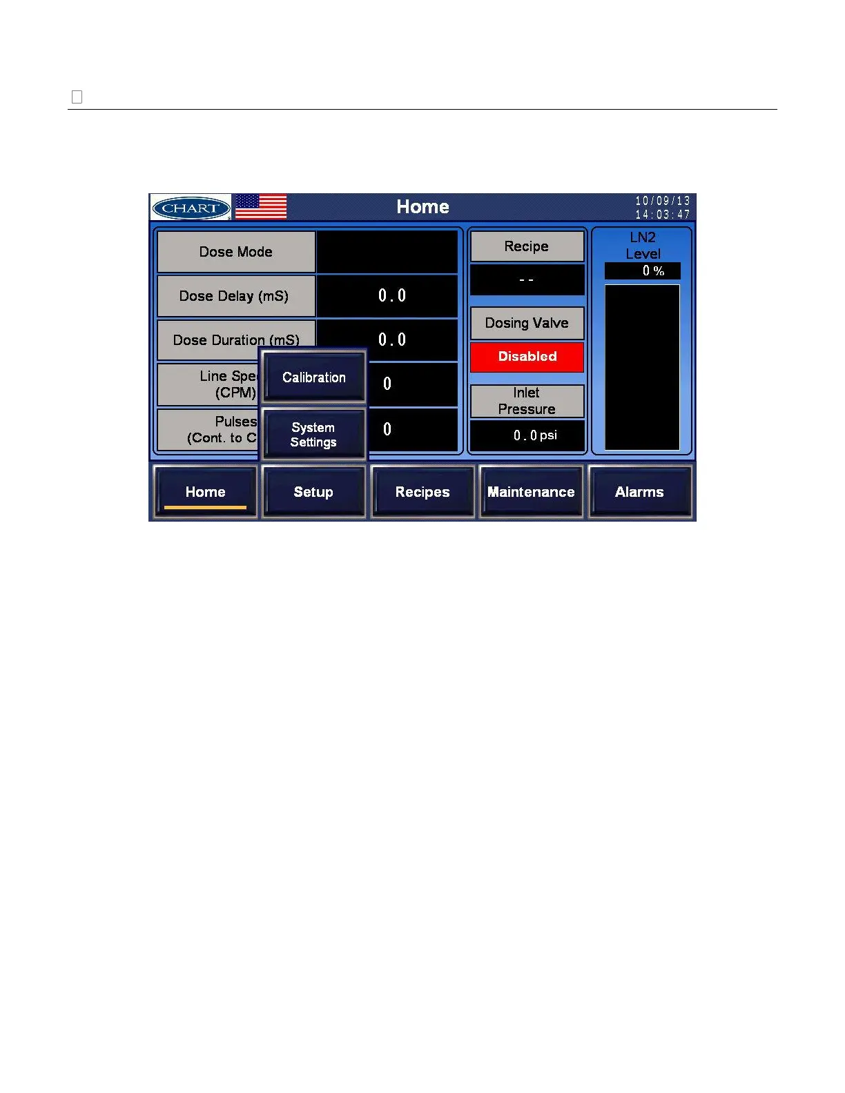[Calibration]. Access to these screens will require log in with user ID and password. See ‘Access and