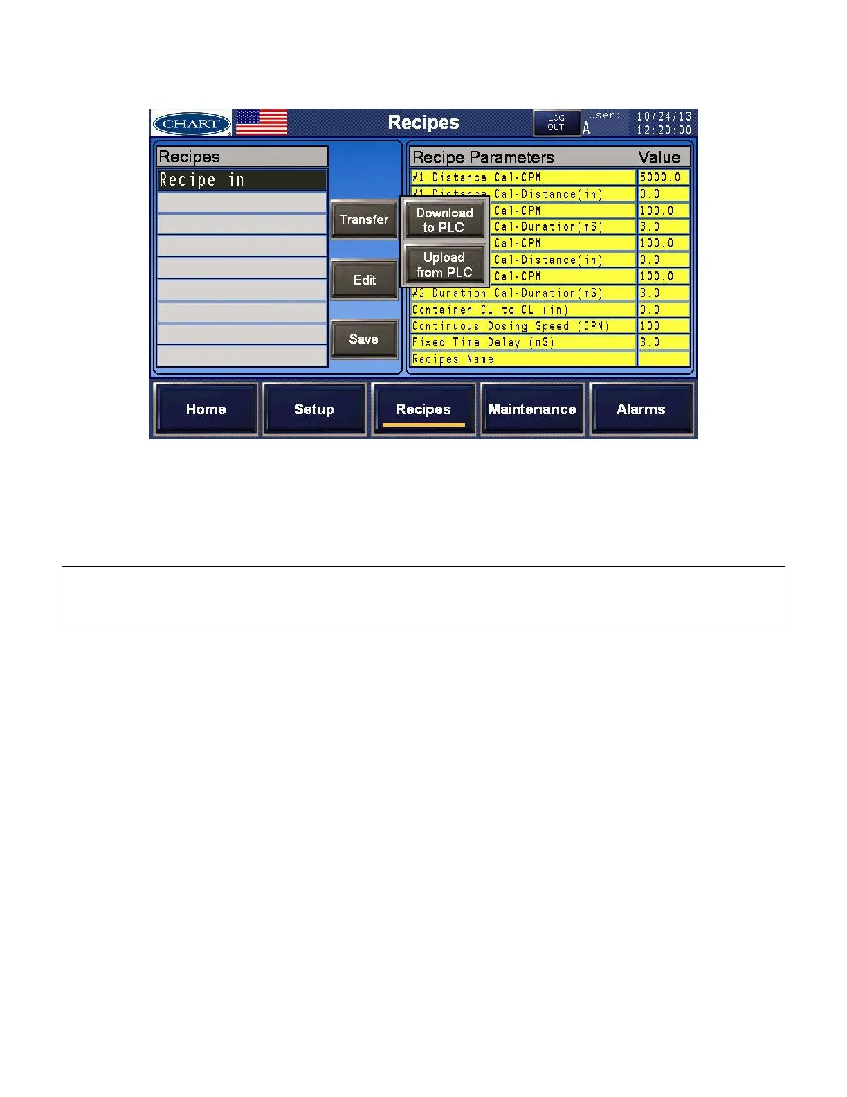 2. Press [Transfer] [Download to PLC] to activate the recipe.
