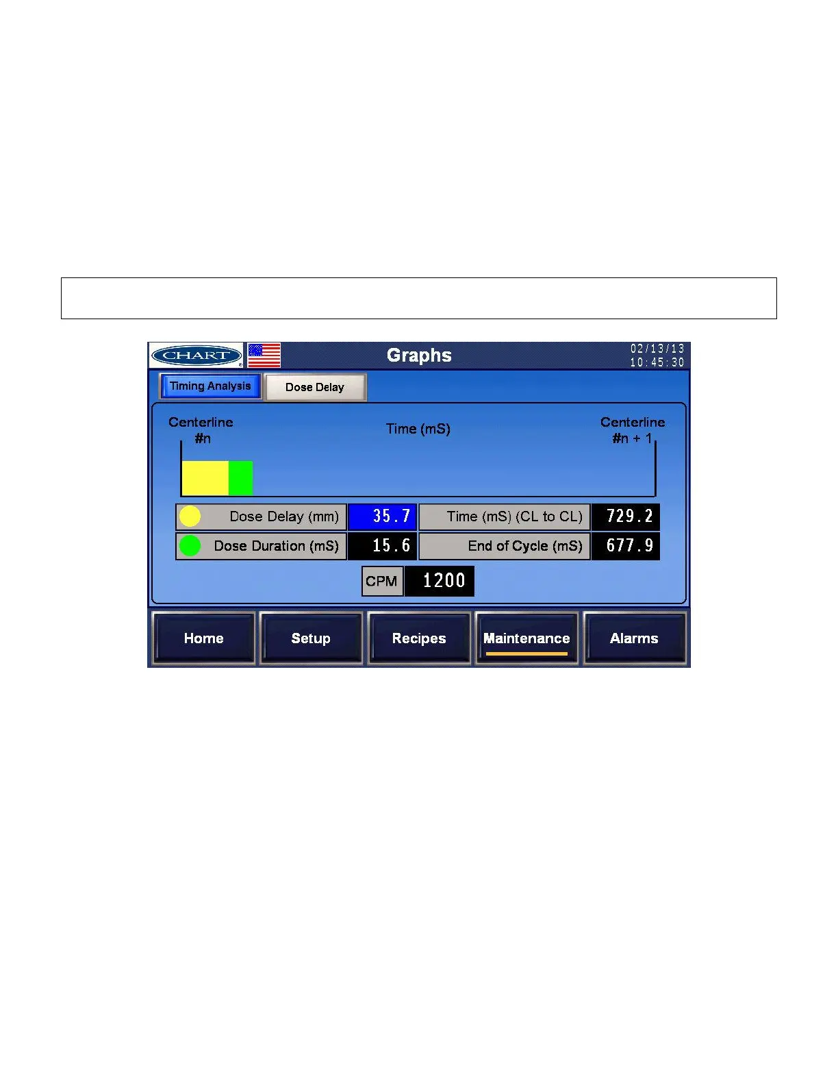 Dose Delay Bar Graph – The graph starts at the left with the sensing of a container by the timing sensor