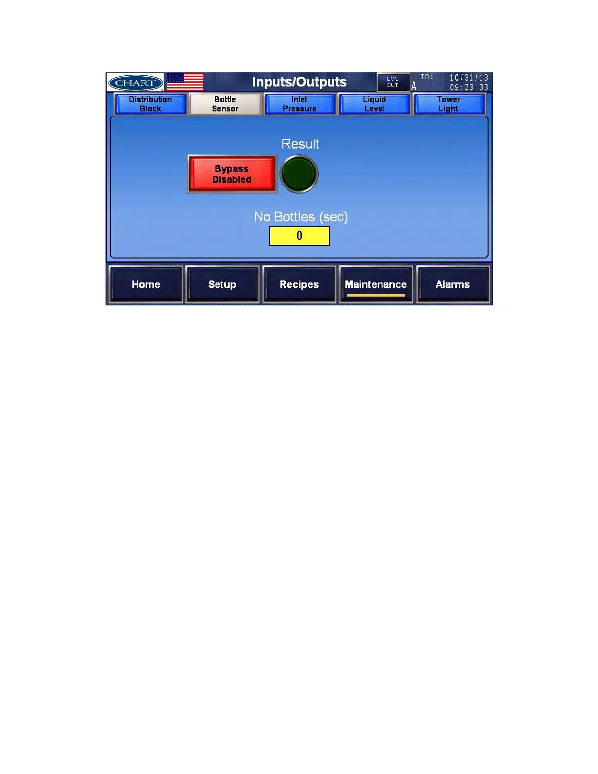 c) No Bottles (sec) – If ‘Bypass Enabled’, if there is no bottle detection for the user defined