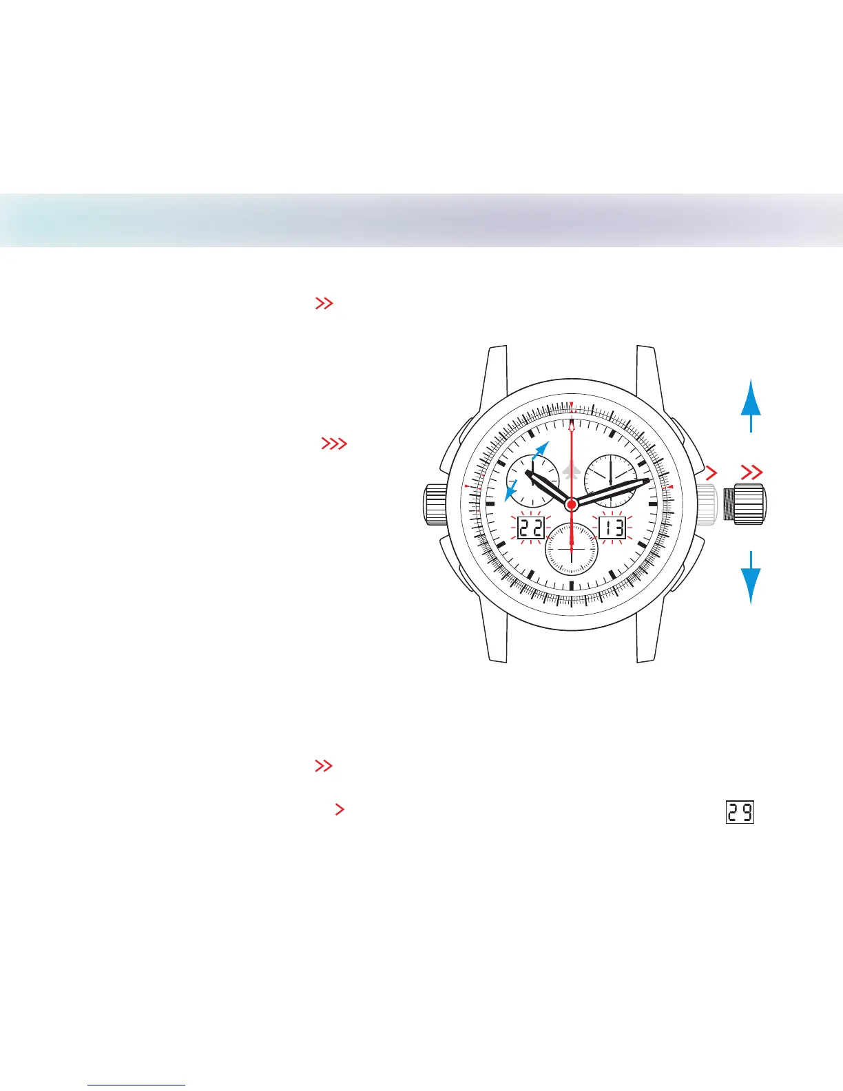 2. Push setting crown back to position and the right LCD (date) will display the correct date