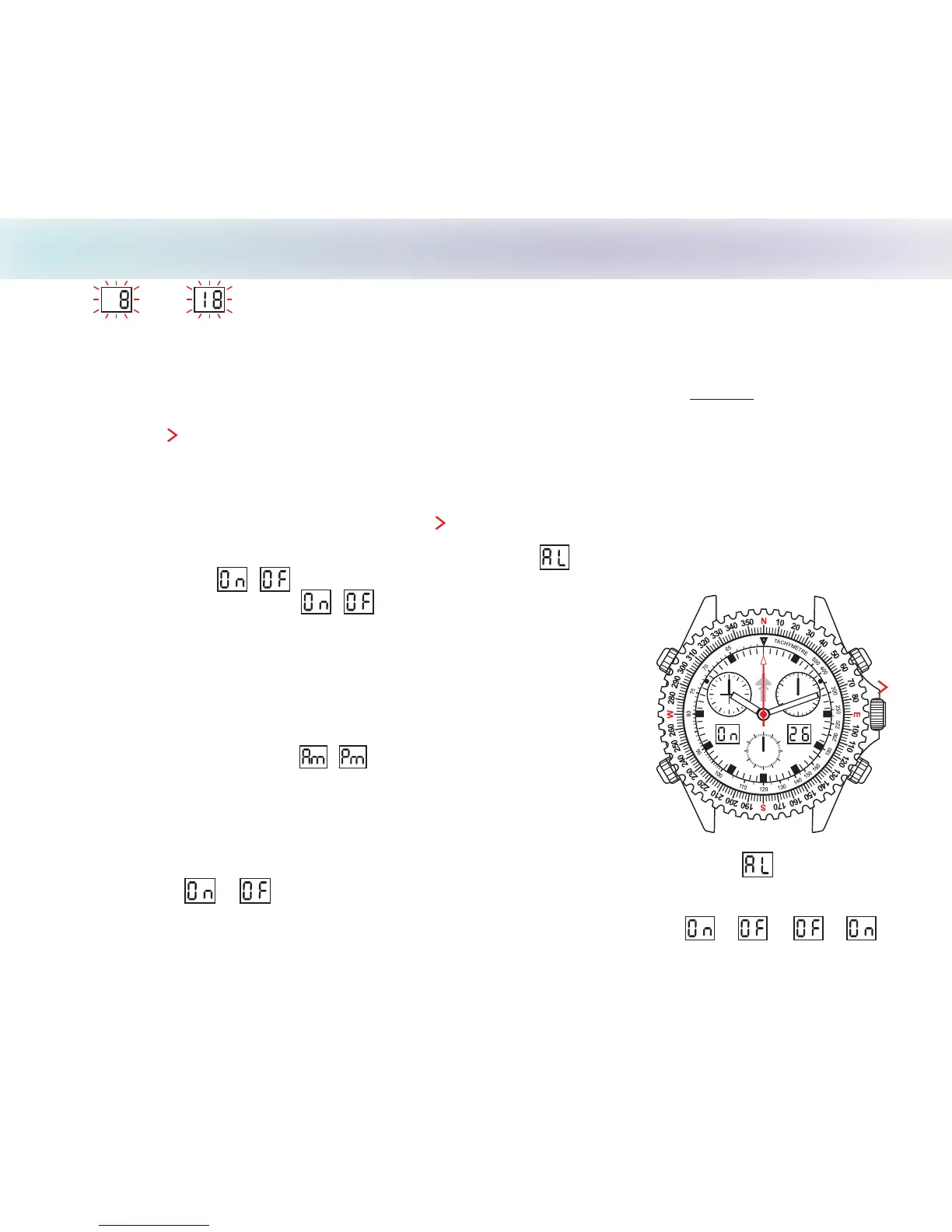 set in the right LCD with button in previous step 4. Set the current time by pushing in the crown to