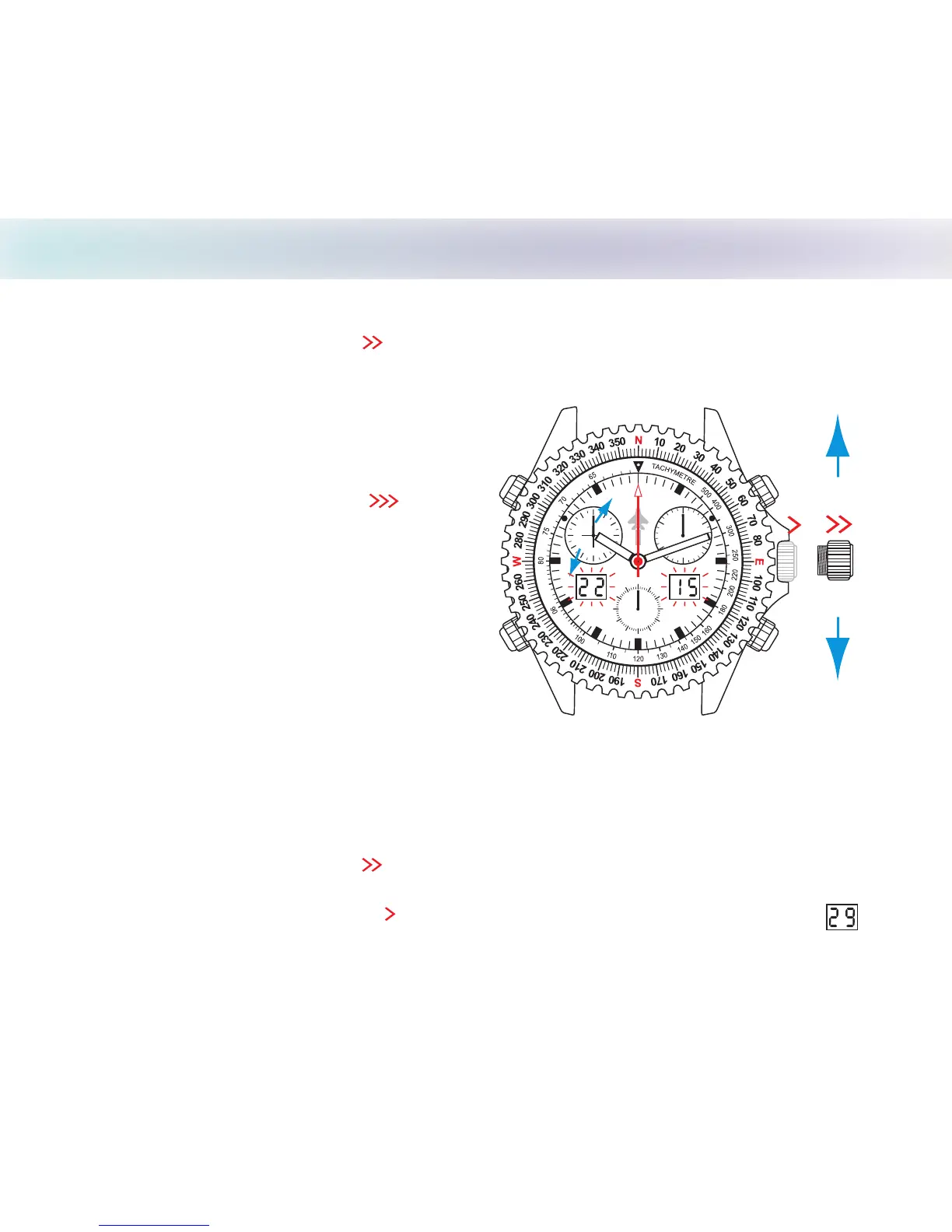 2. Push setting crown back to position and the right LCD (date) will display the correct date