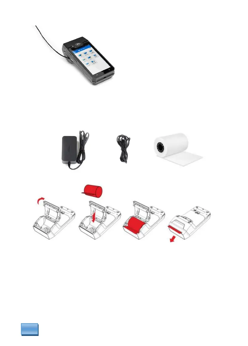 • Pull the paper up to the top of the terminal. While holding the paper and close the