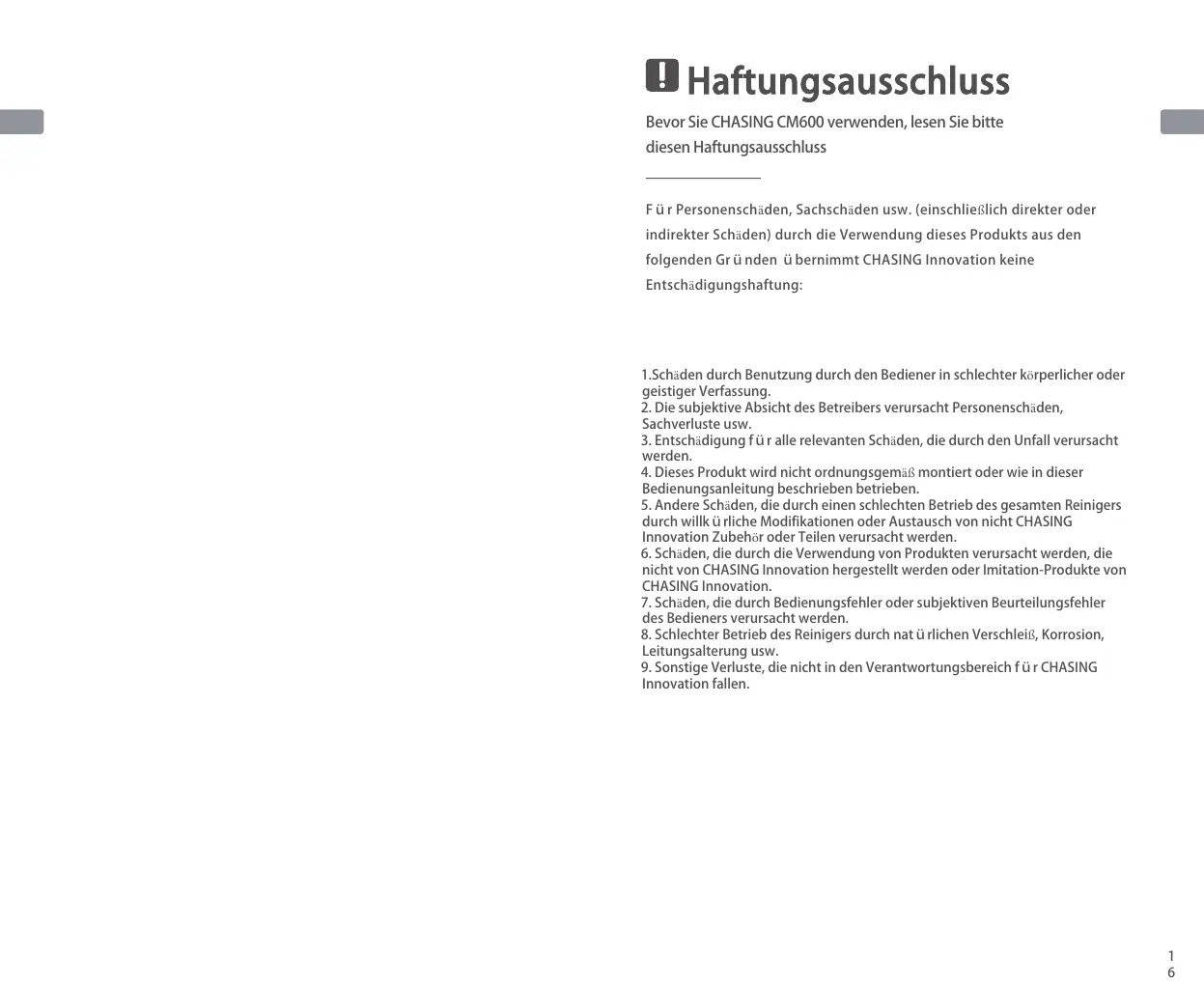 Bevor Sie CHASING CM600 verwenden, lesen Sie bitte