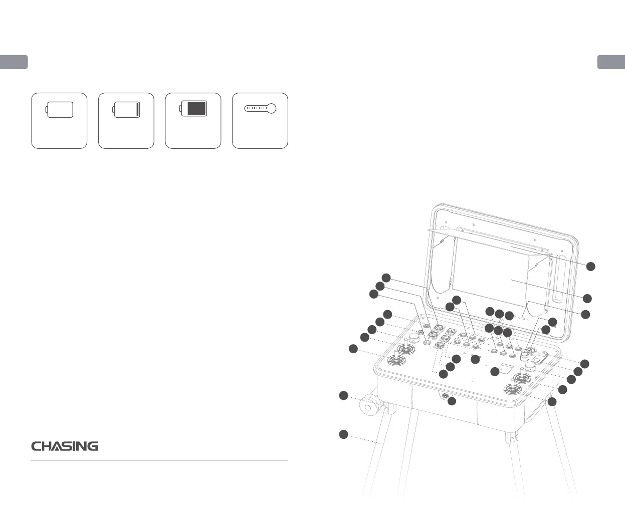 1. CHASING控制台支援以25.2V 2.9A及25.2V 8A充電器進行充電。