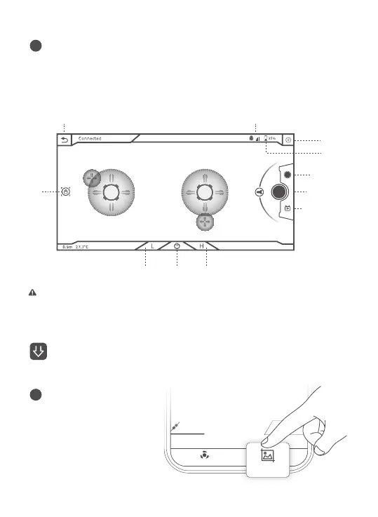 button to unlock the drone and use the virtual joy stick on screen to control the