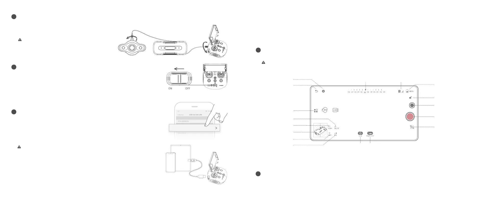 b. A few seconds later, the remote controller’s indicator lights up, 5G or 2.4G light will be