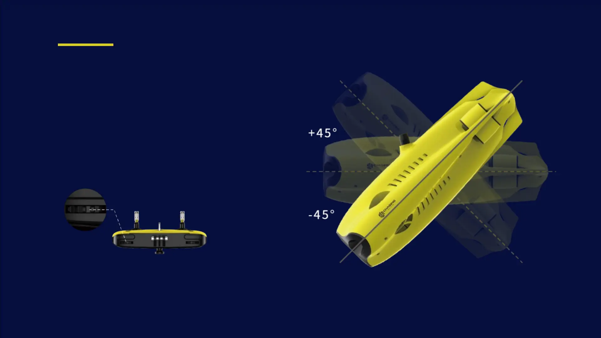 The drone's pitching angle can be adjusted by ±45° .