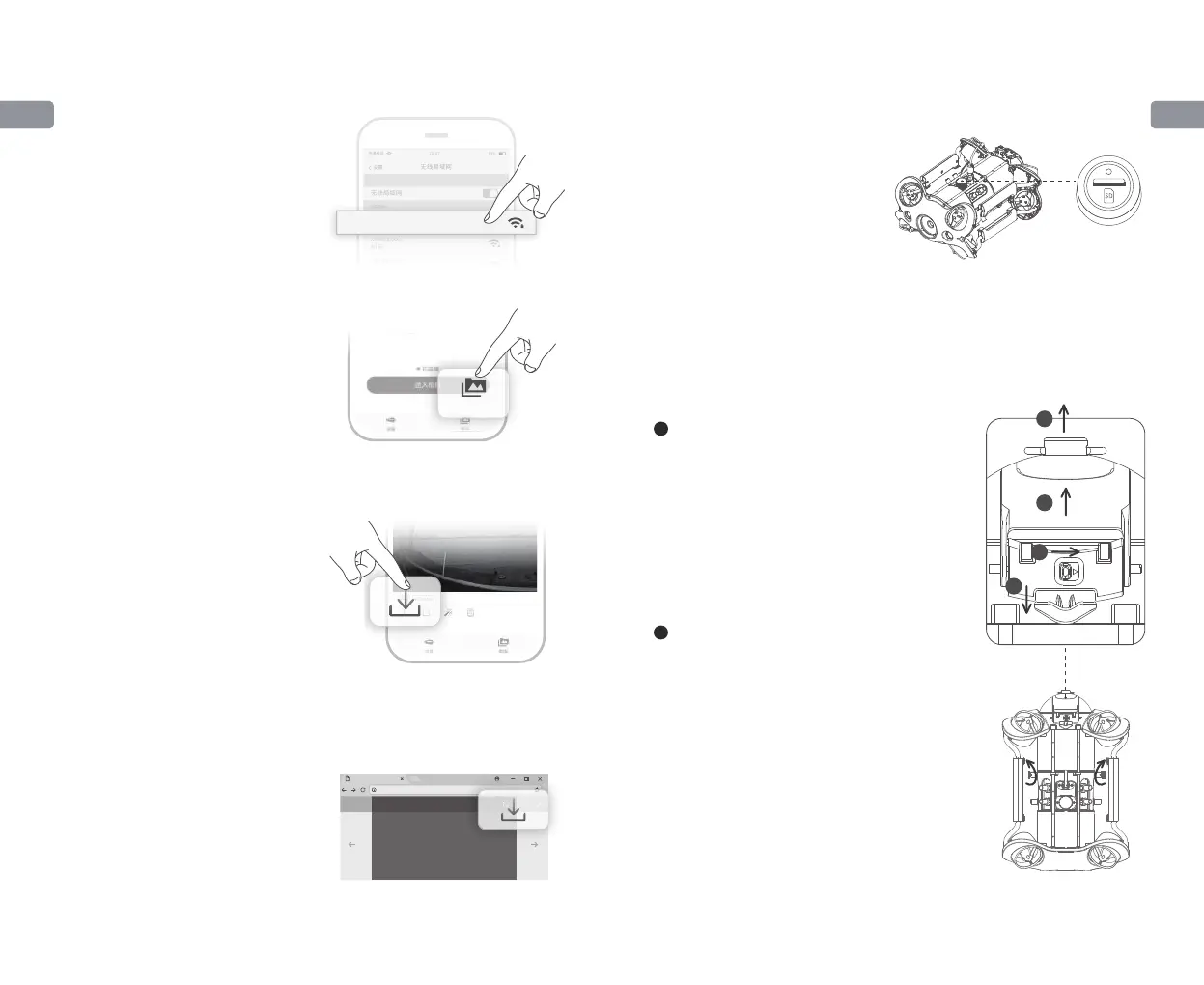 * 注:1)Micro SD卡拆卸或安装前,请关闭手柄将潜航器断
