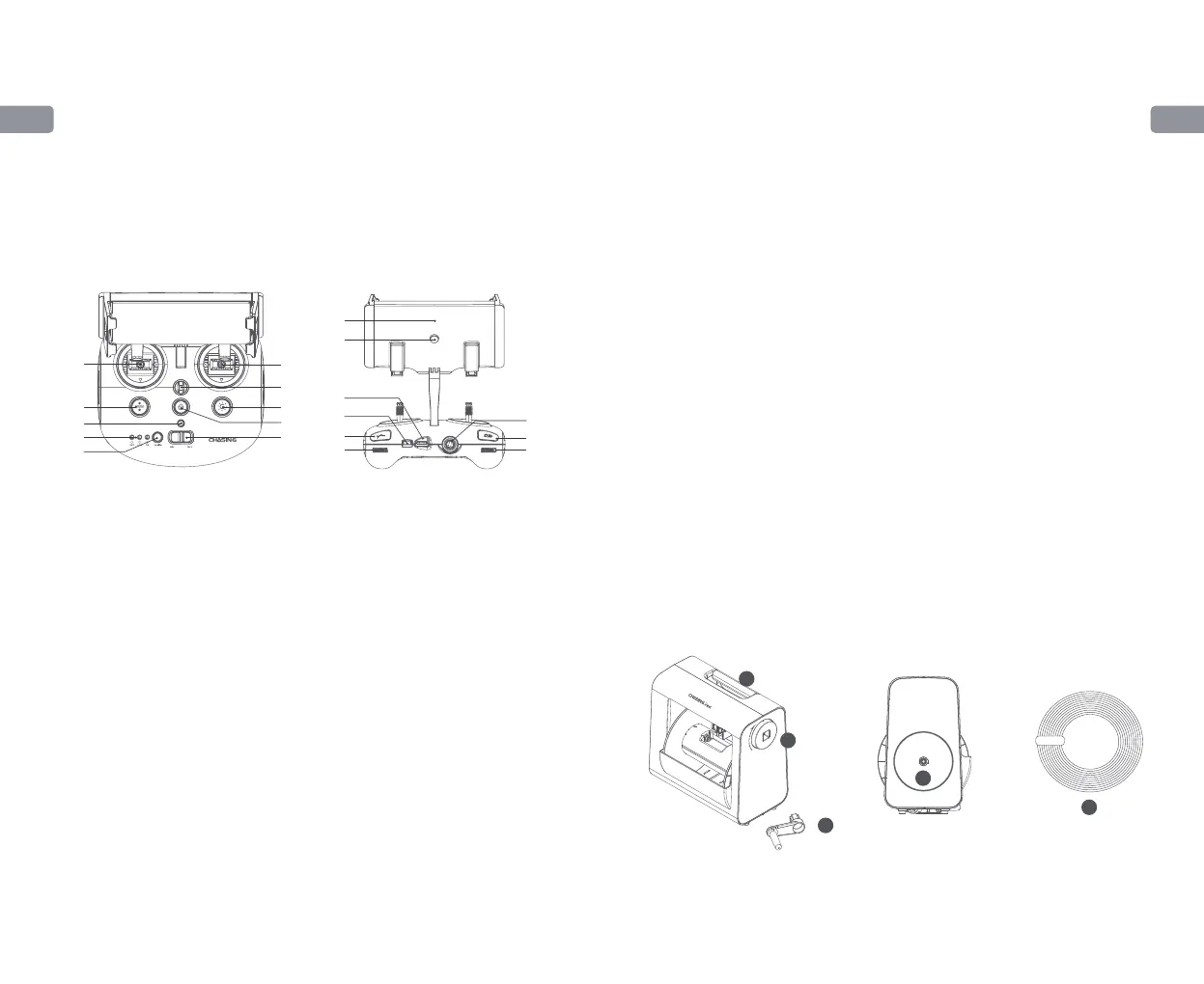 CHASING M2 S 의 조종기는 통신과 제어 기능이 통합되어 있다. 동봉된 테더를